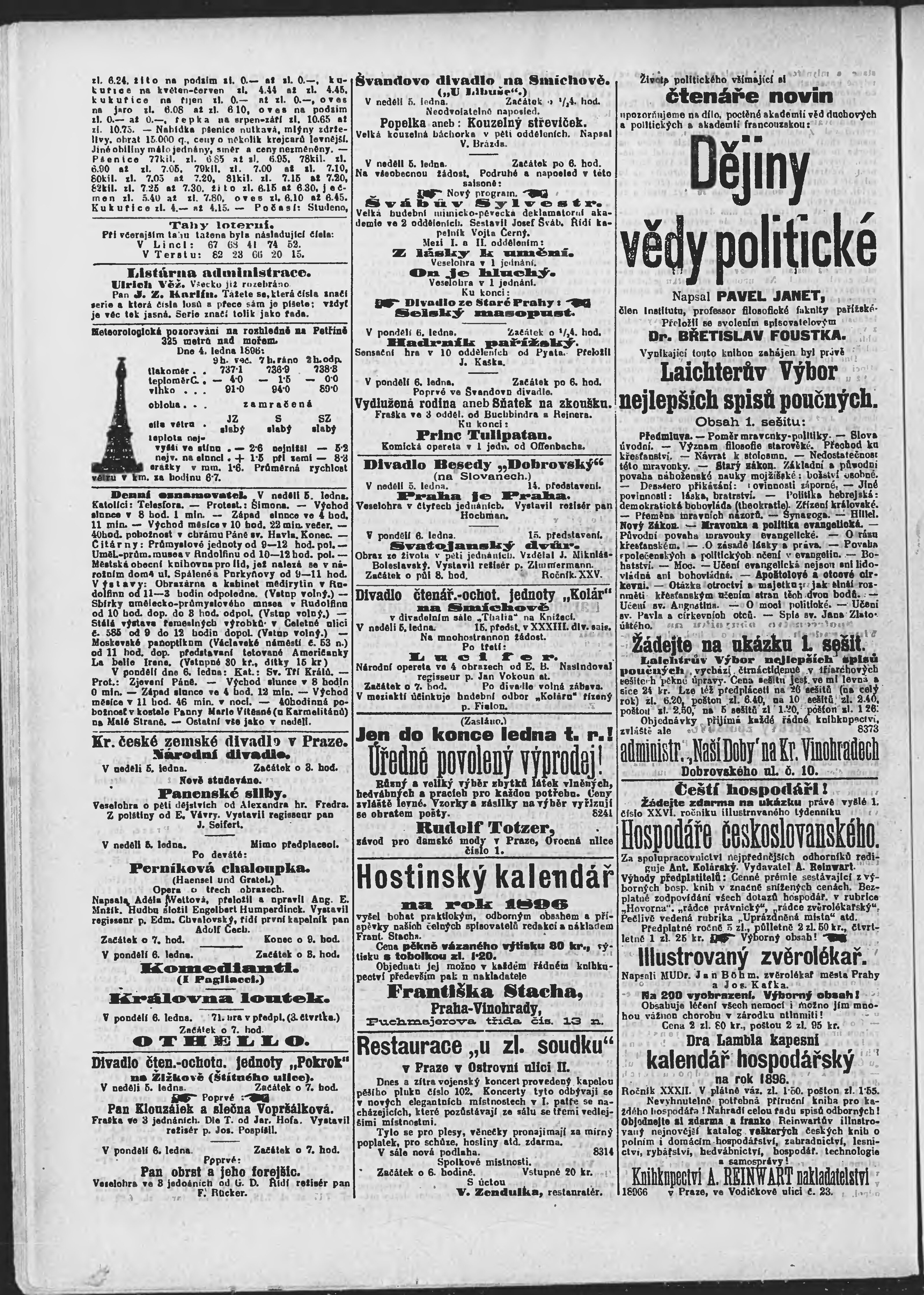 * Datum vydání výtisku: 5.1.1896 Číslo výtisku: 5 Poznámky k výtisku: ranní vydání;