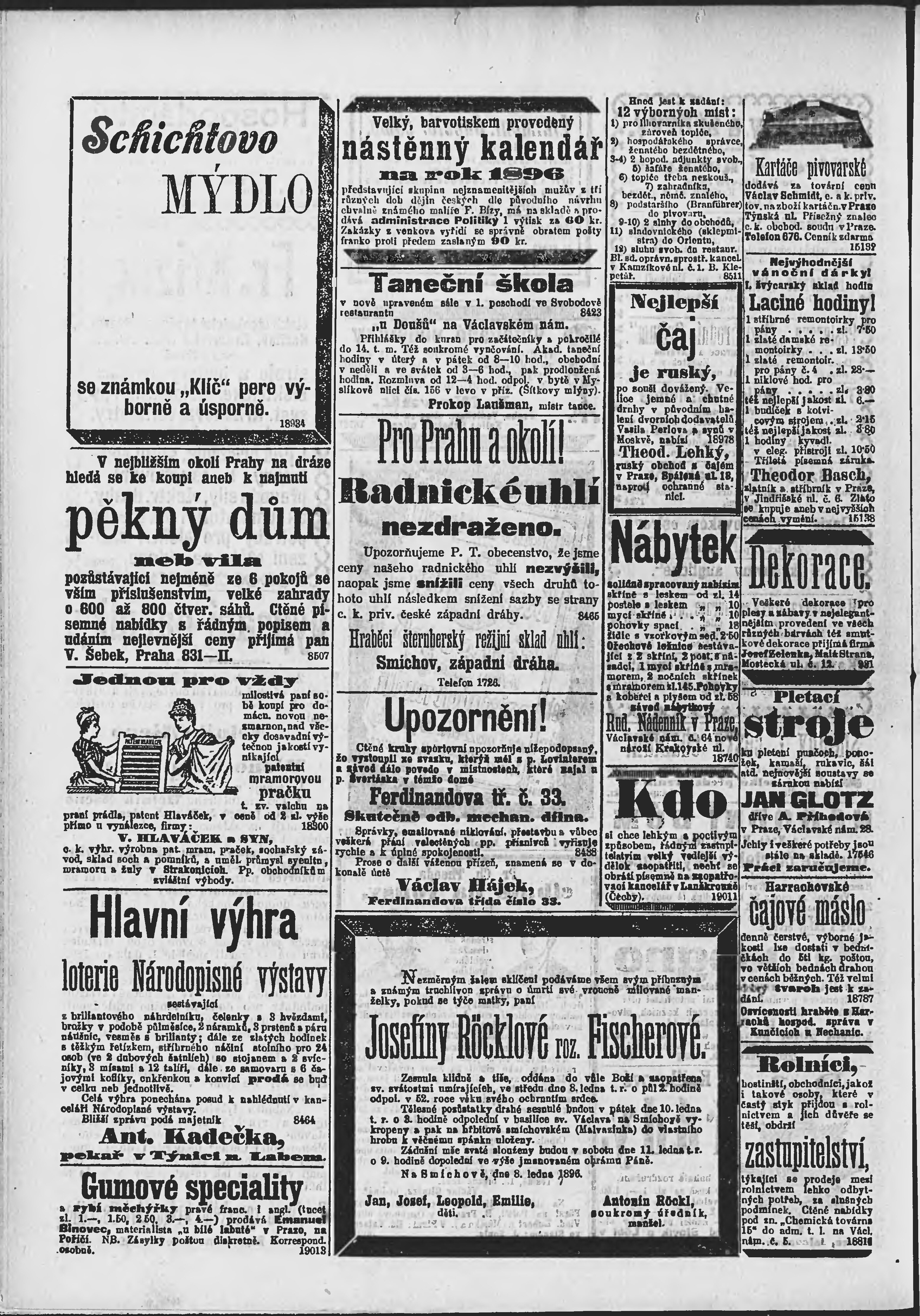 * Datum vydání výtisku: 9.1.1896 Číslo výtisku: 8 Poznámky k výtisku: ranní vydání;