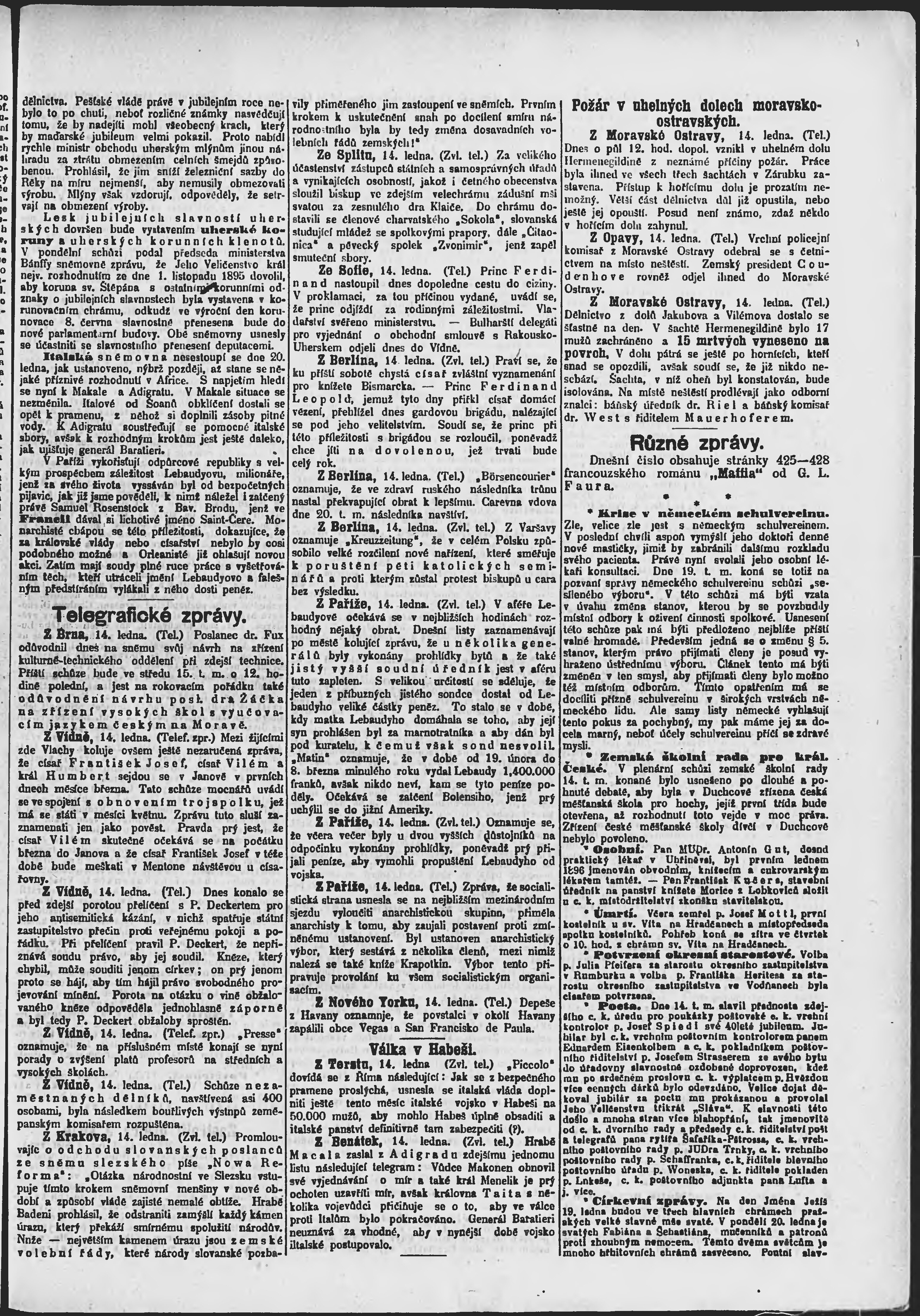 * Datum vydání výtisku: 15.1.1896 Číslo výtisku: 14 Poznámky k výtisku: ranní vydání;