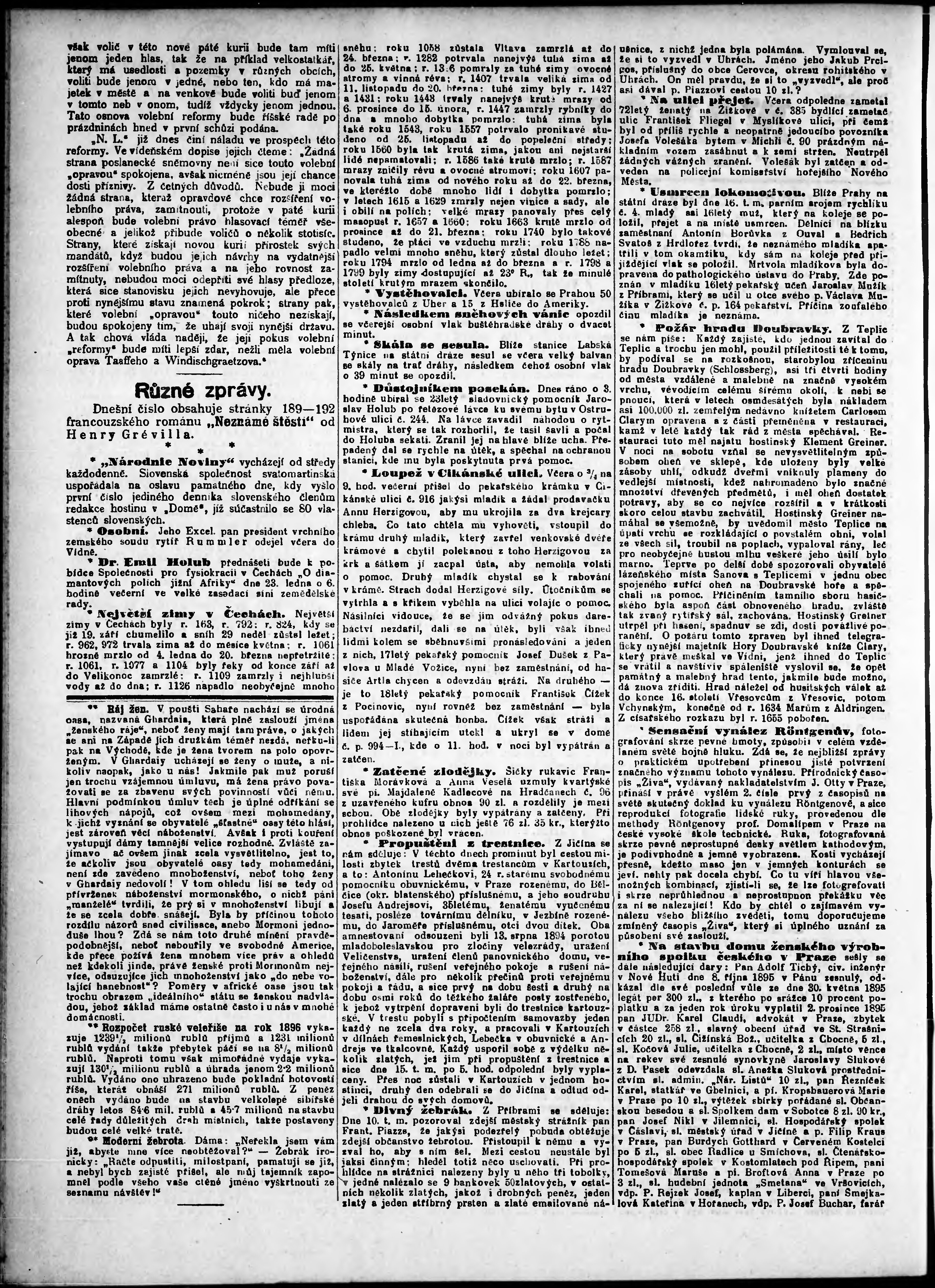* Datum vydání výtisku: 17.1.1896 Číslo výtisku: 16 Poznámky k výtisku: odpolední vydání;