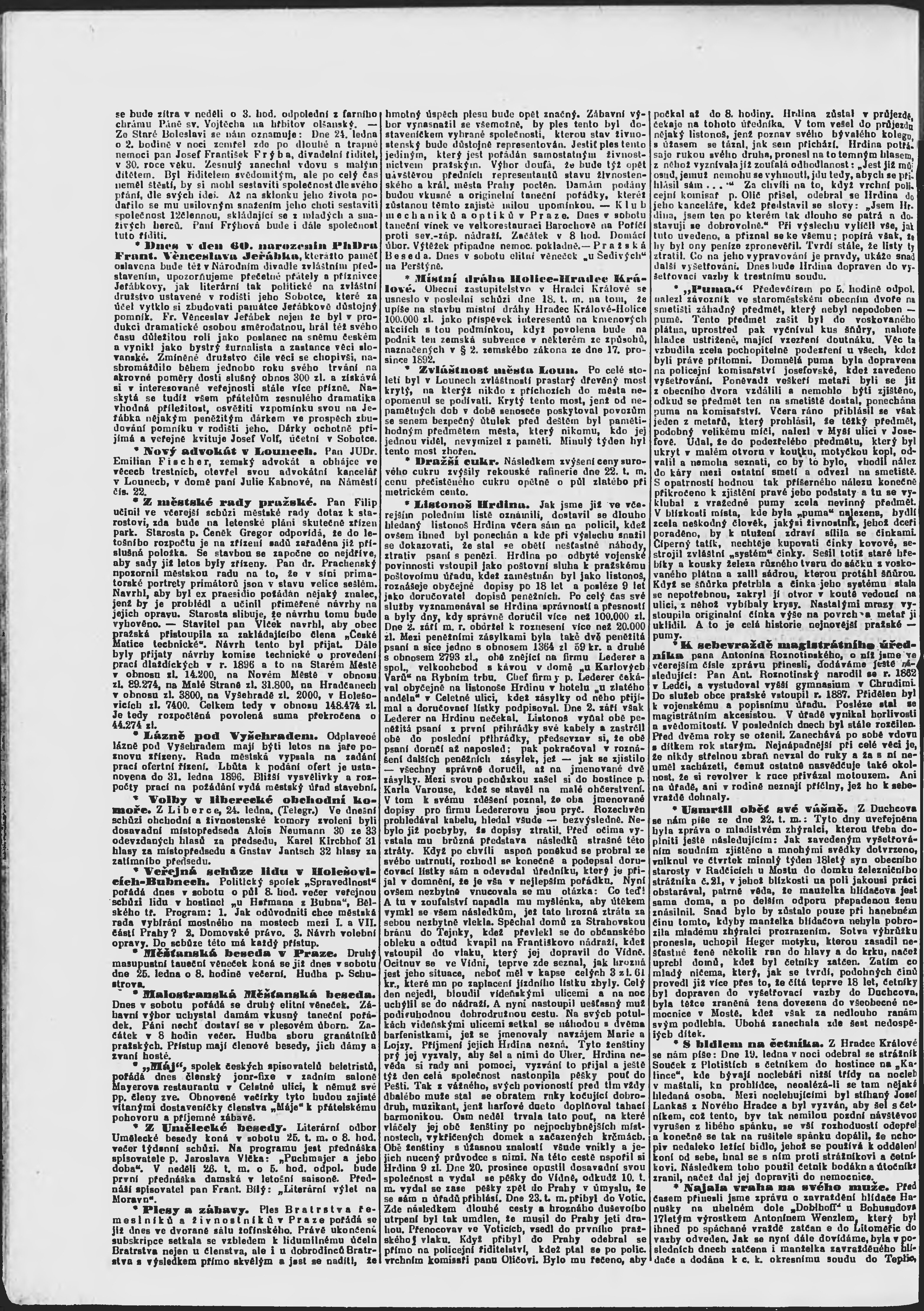 * Datum vydání výtisku: 25.1.1896 Číslo výtisku: 24 Poznámky k výtisku: ranní vydání;