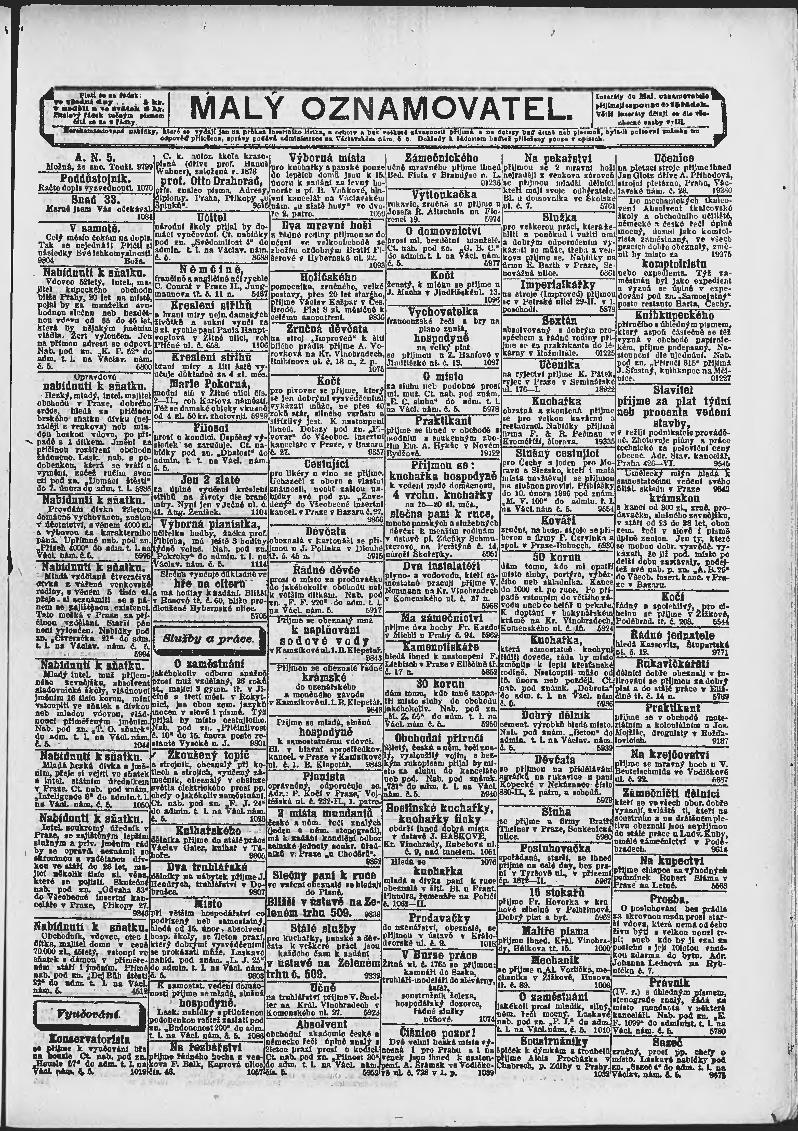 * Datum vydání výtisku: 1.2.1896 Číslo výtisku: 31 Poznámky k výtisku: ranní vydání;