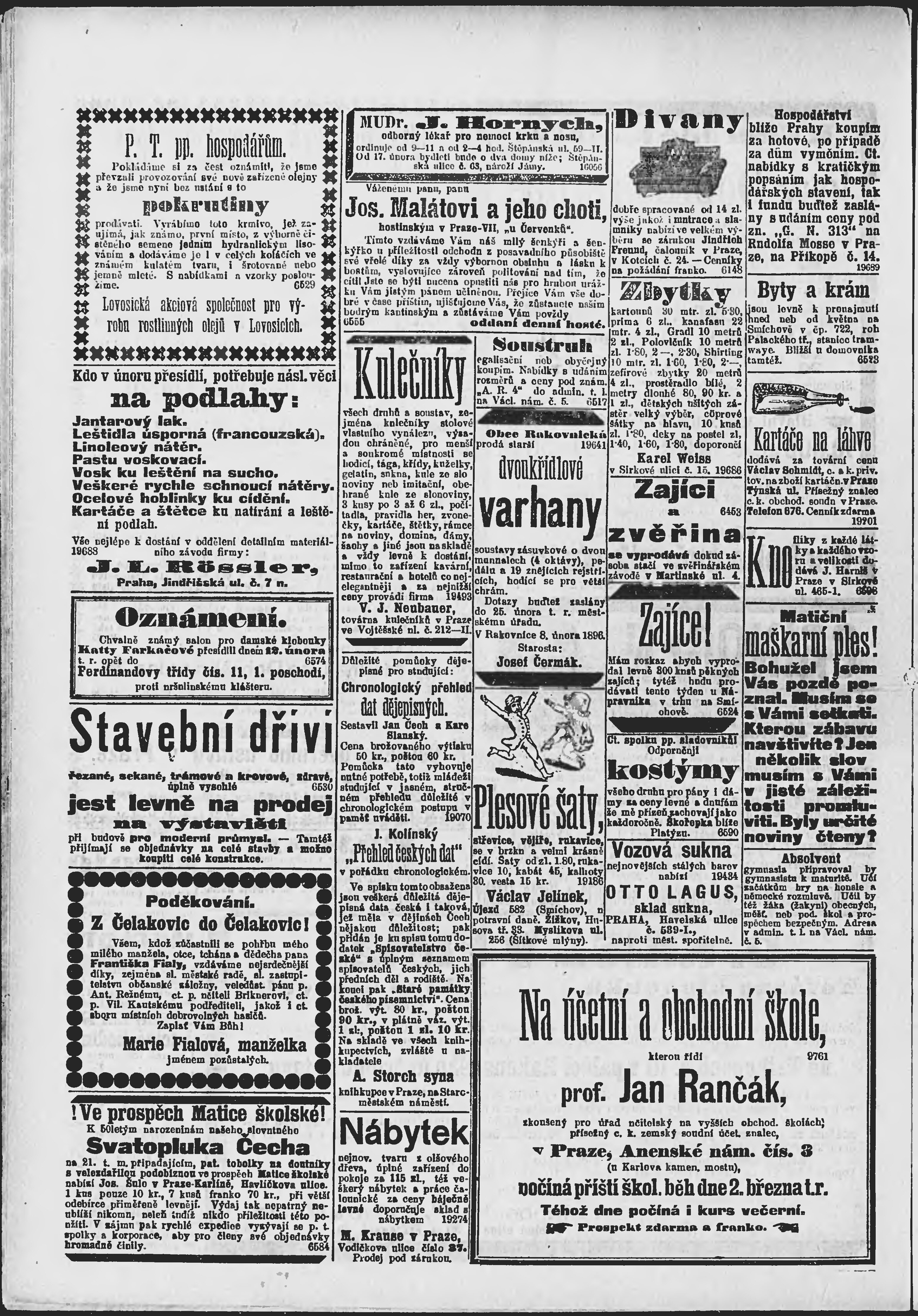 * Datum vydání výtisku: 13.2.1896 Číslo výtisku: 43 Poznámky k výtisku: ranní vydání;