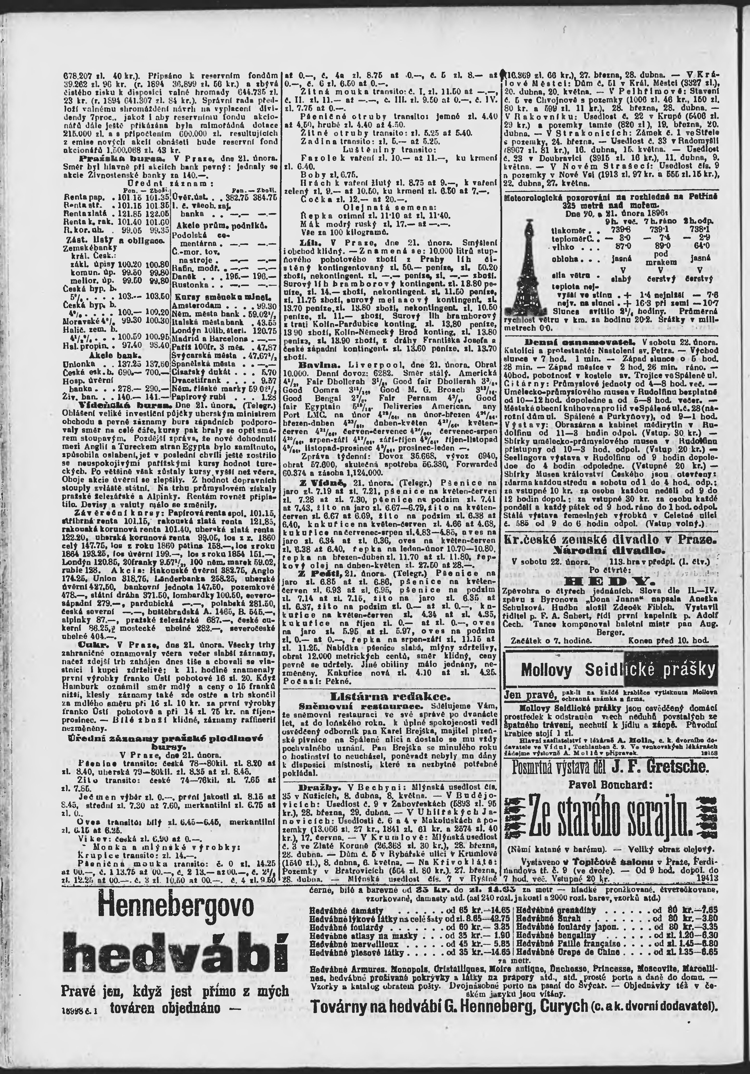 * Datum vydání výtisku: 22.2.1896 Číslo výtisku: 52 Poznámky k výtisku: ranní vydání;