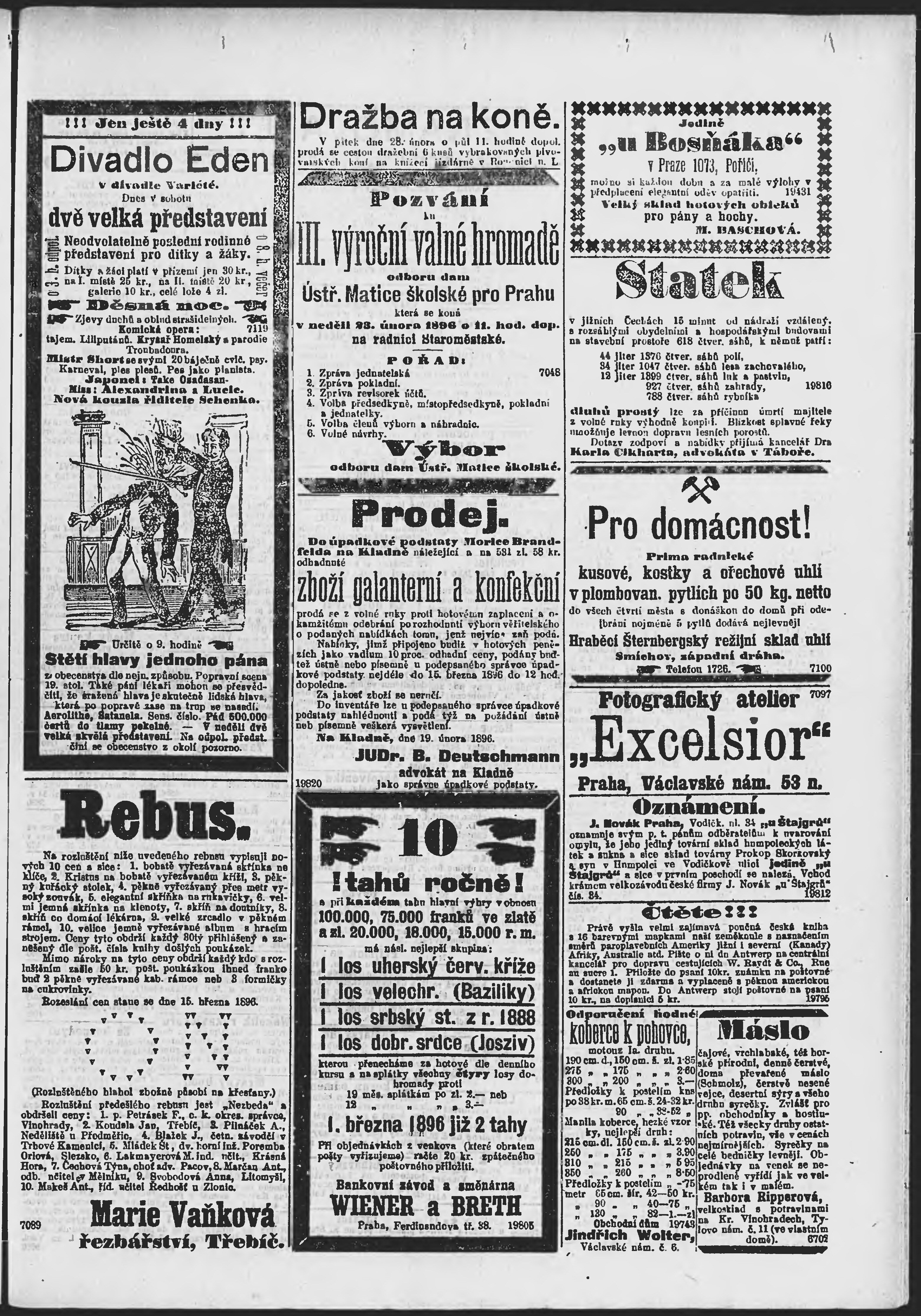 * Datum vydání výtisku: 22.2.1896 Číslo výtisku: 52 Poznámky k výtisku: ranní vydání;