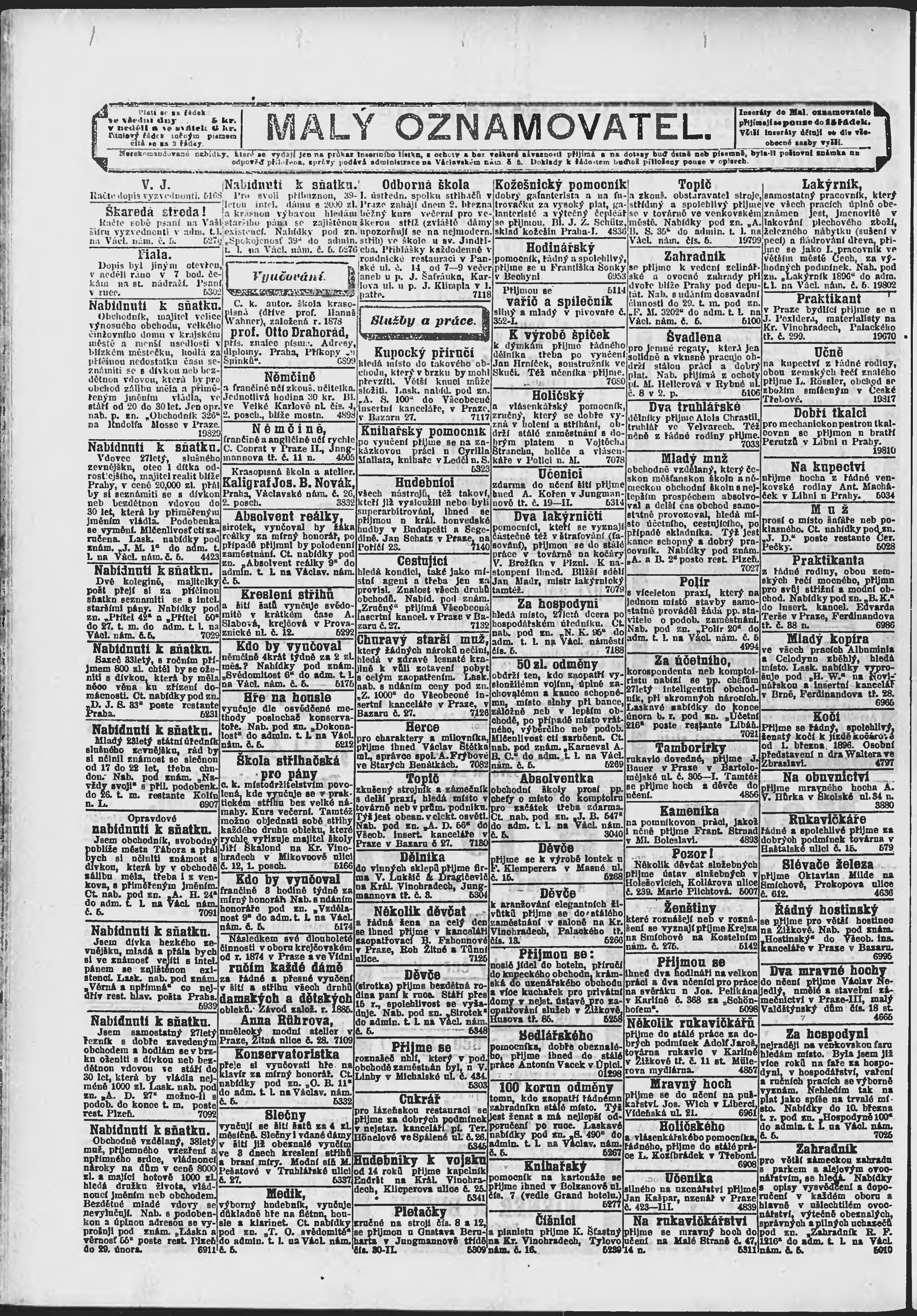 * Datum vydání výtisku: 22.2.1896 Číslo výtisku: 52 Poznámky k výtisku: ranní vydání;