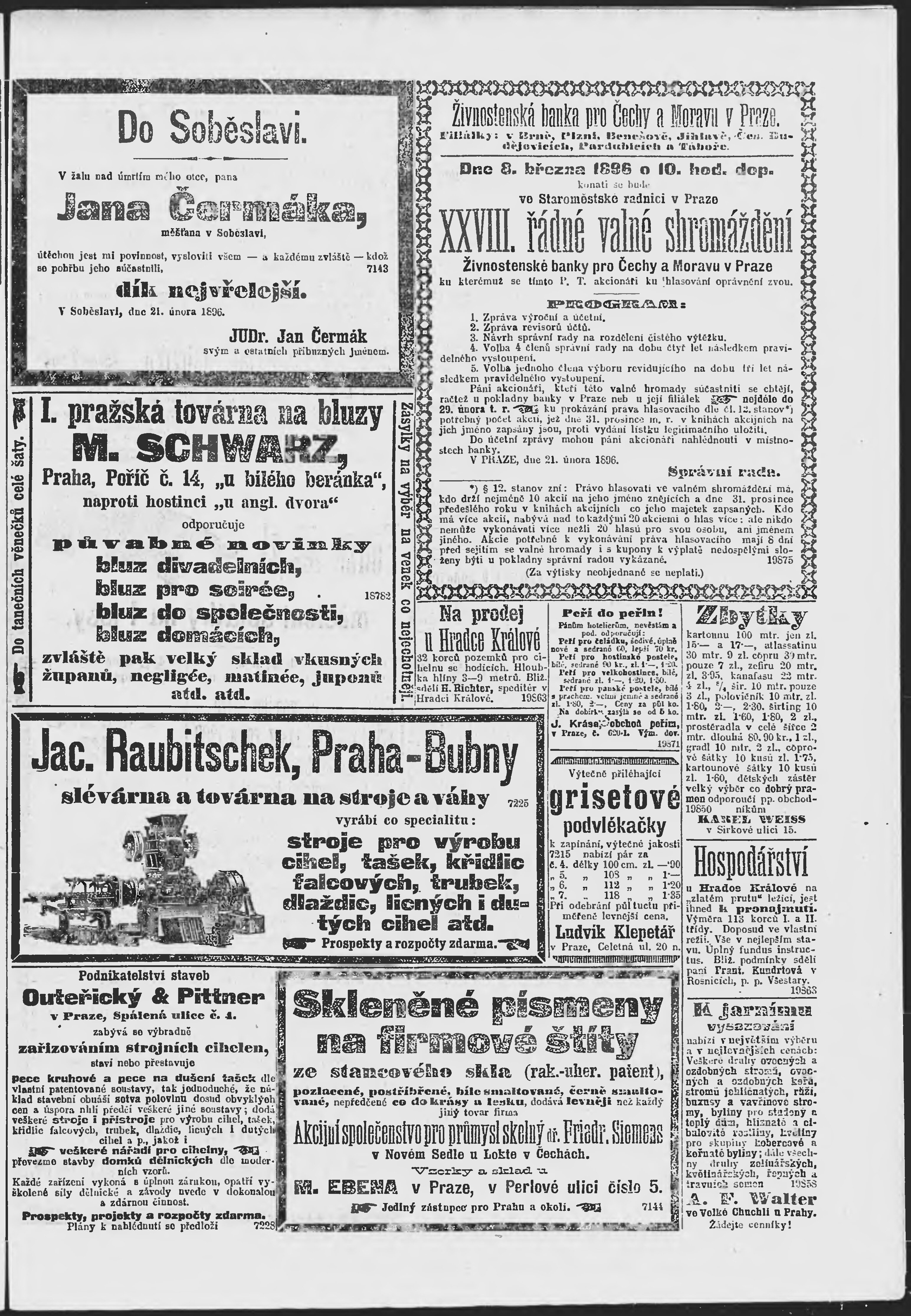 * Datum vydání výtisku: 23.2.1896 Číslo výtisku: 53 Poznámky k výtisku: ranní vydání;