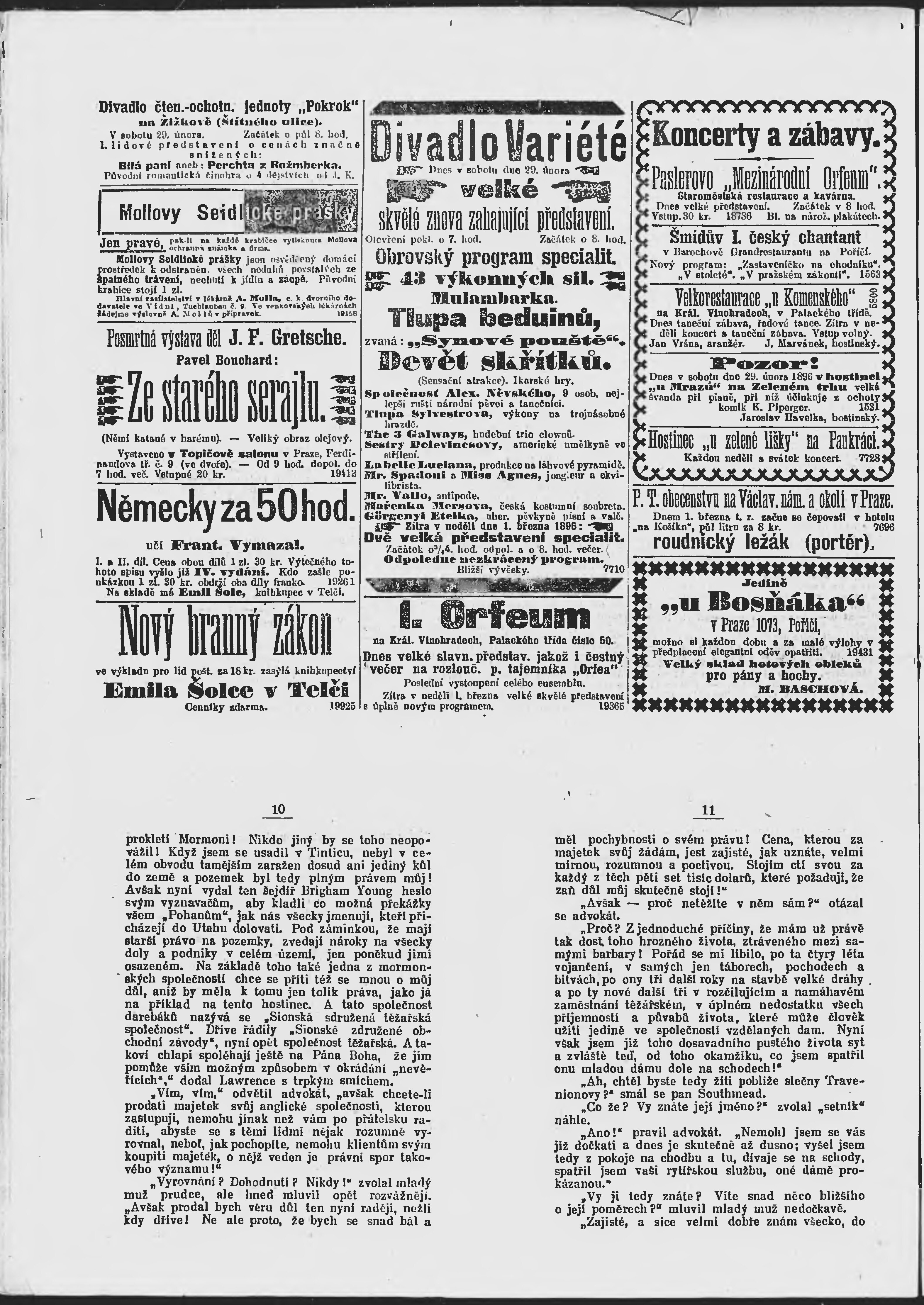 * Datum vydání výtisku: 29.2.1896 Číslo výtisku: 59 Poznámky k výtisku: ranní vydání;