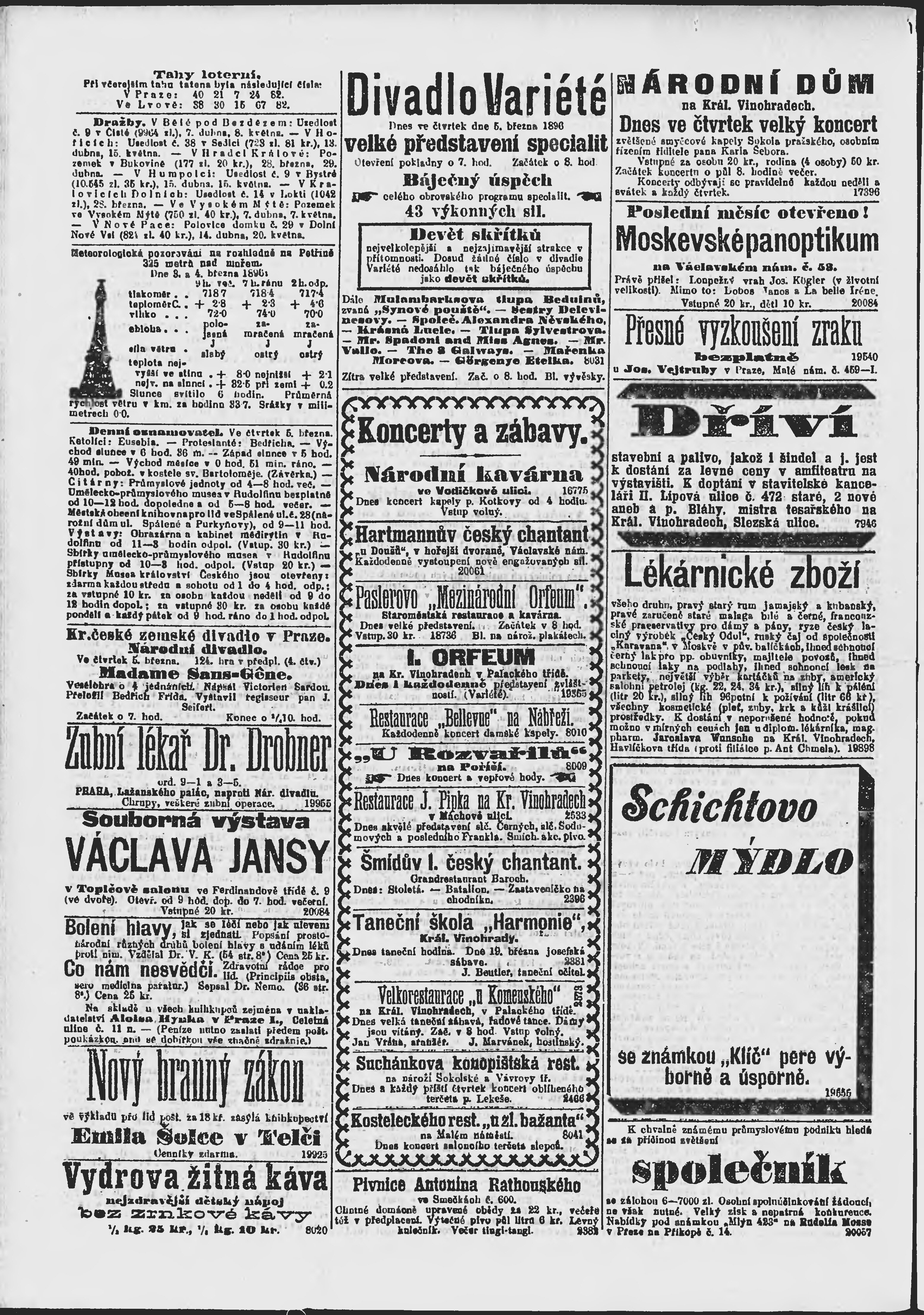 * Datum vydání výtisku: 5.3.1896 Číslo výtisku: 64 Poznámky k výtisku: ranní vydání;