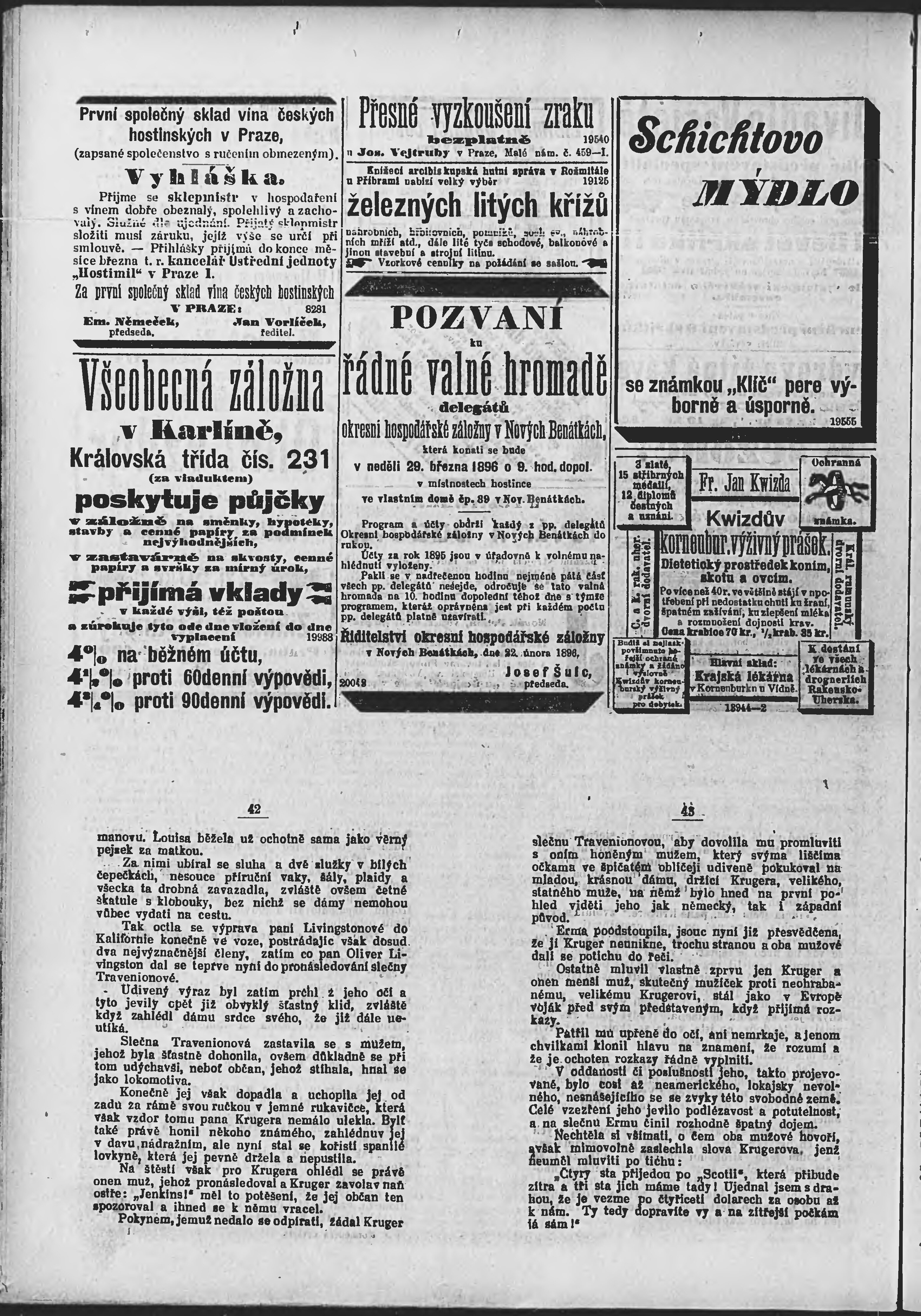 * Datum vydání výtisku: 12.3.1896 Číslo výtisku: 71 Poznámky k výtisku: ranní vydání;