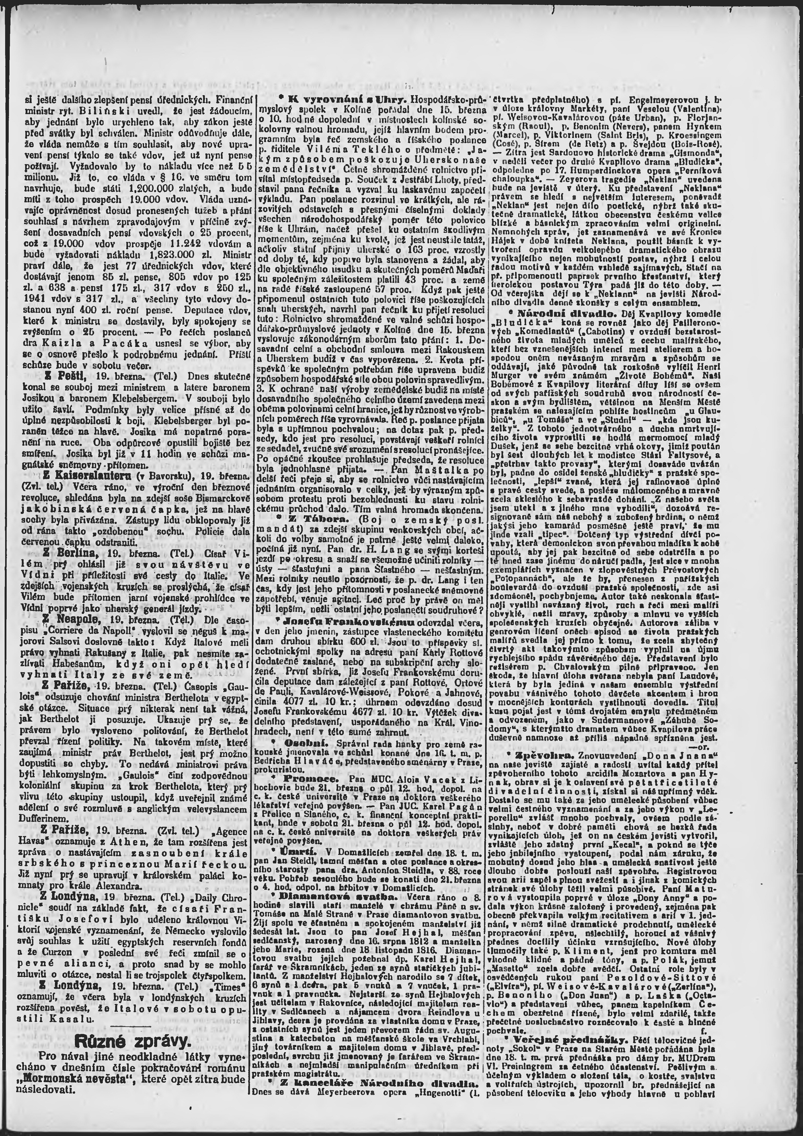 * Datum vydání výtisku: 20.3.1896 Číslo výtisku: 79 Poznámky k výtisku: ranní vydání;