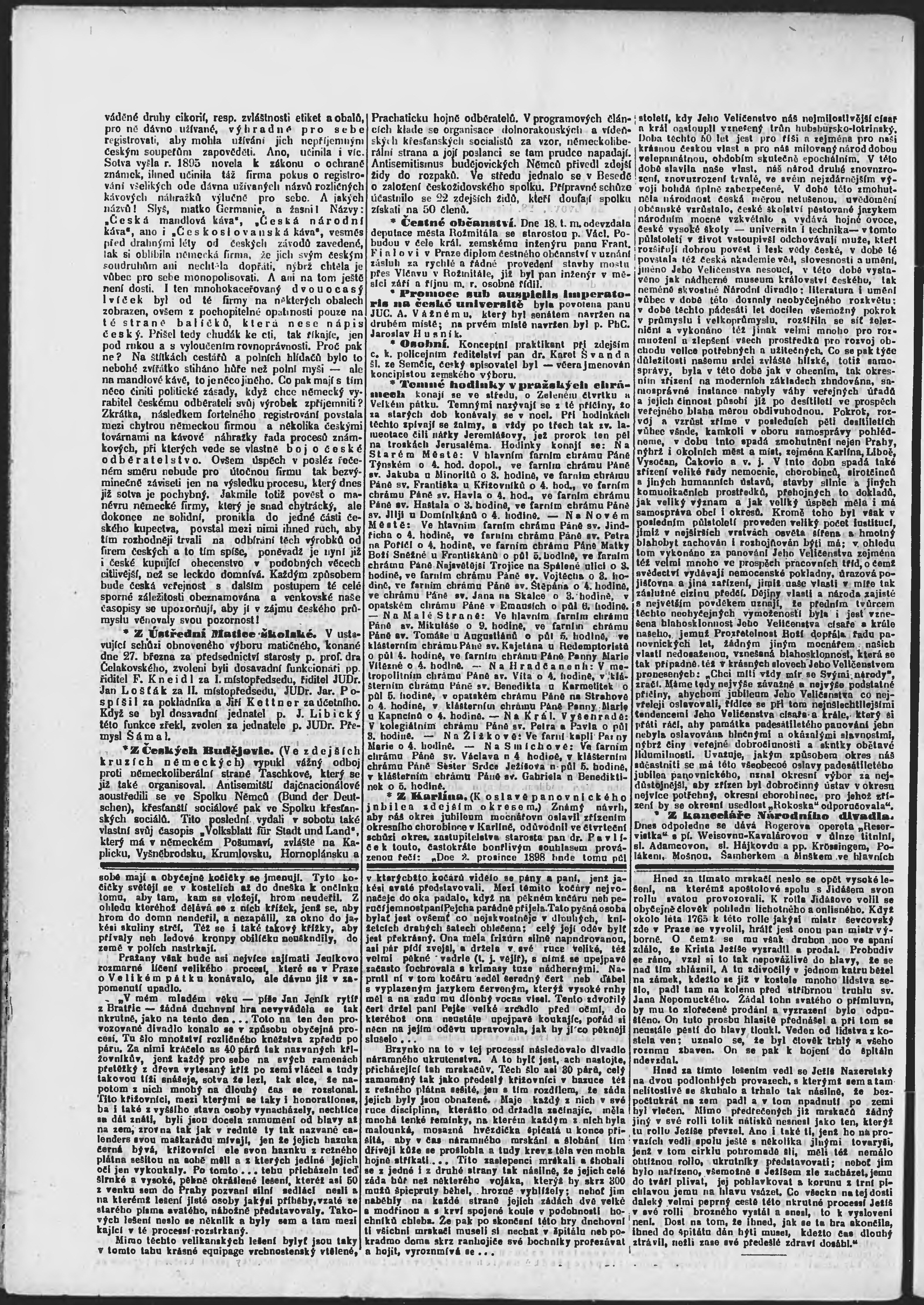 * Datum vydání výtisku: 29.3.1896 Číslo výtisku: 88 Poznámky k výtisku: ranní vydání;