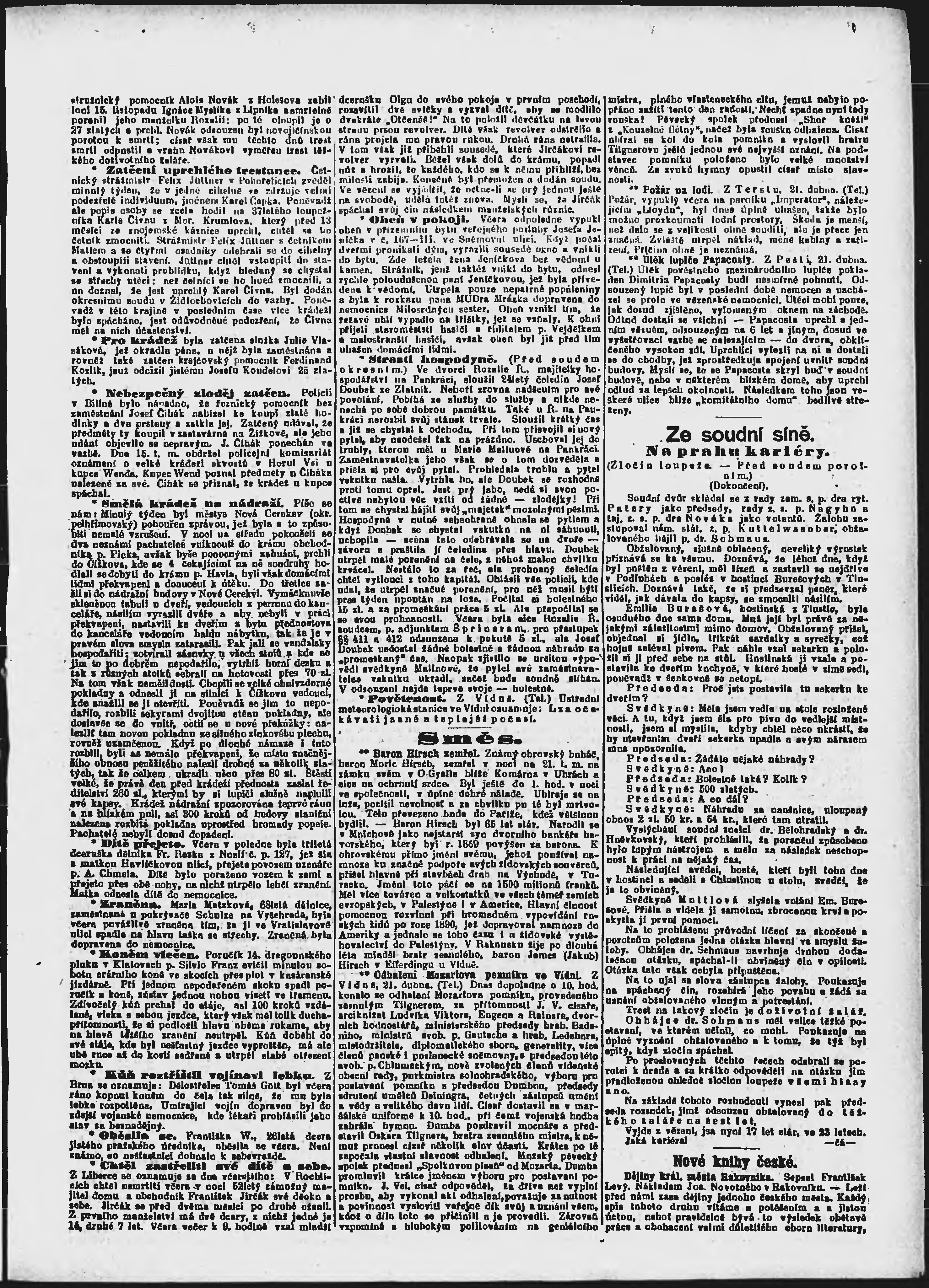 * Datum vydání výtisku: 22.4.1896 Číslo výtisku: 111 Poznámky k výtisku: ranní vydání;