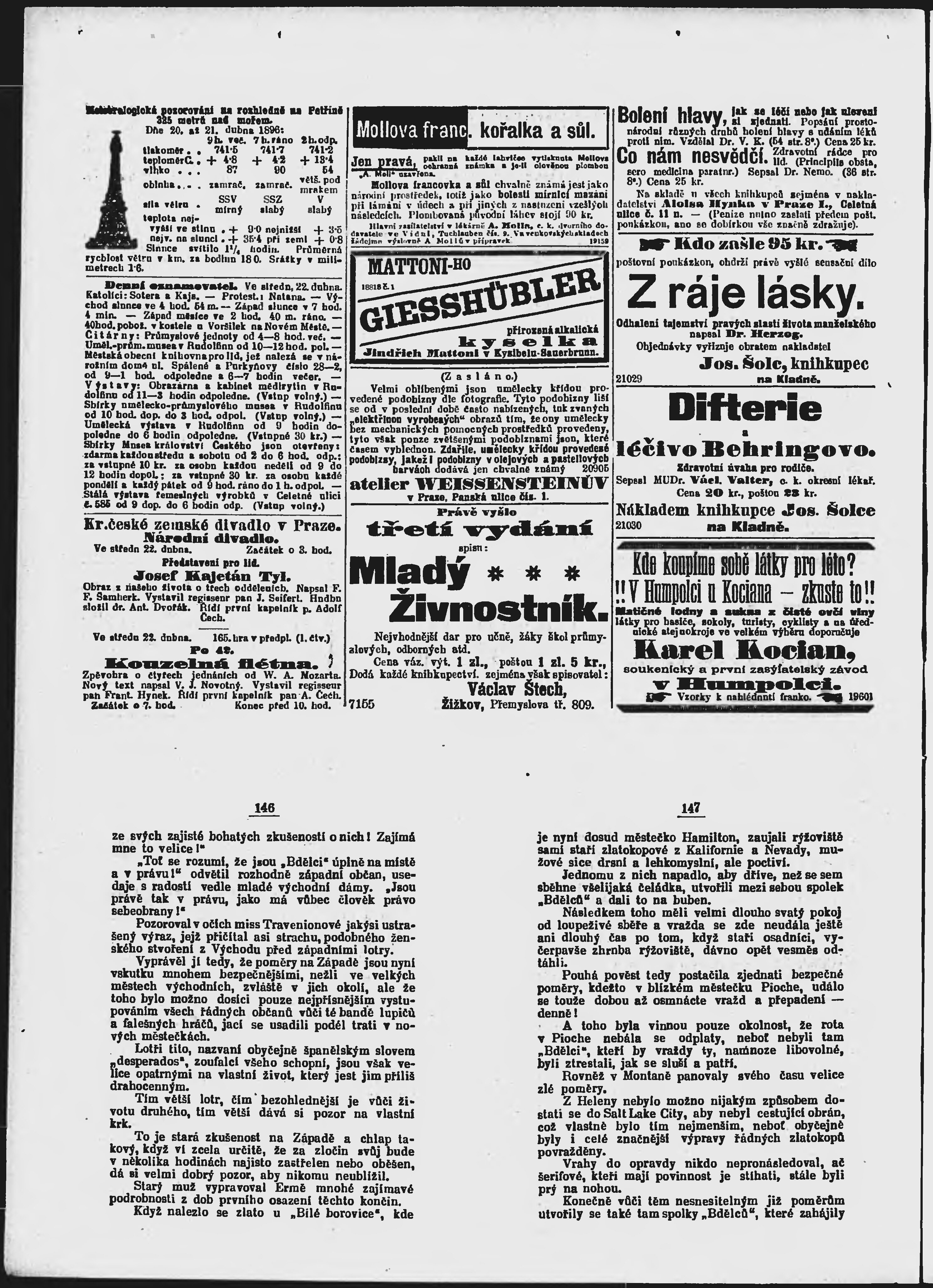 * Datum vydání výtisku: 22.4.1896 Číslo výtisku: 111 Poznámky k výtisku: ranní vydání;