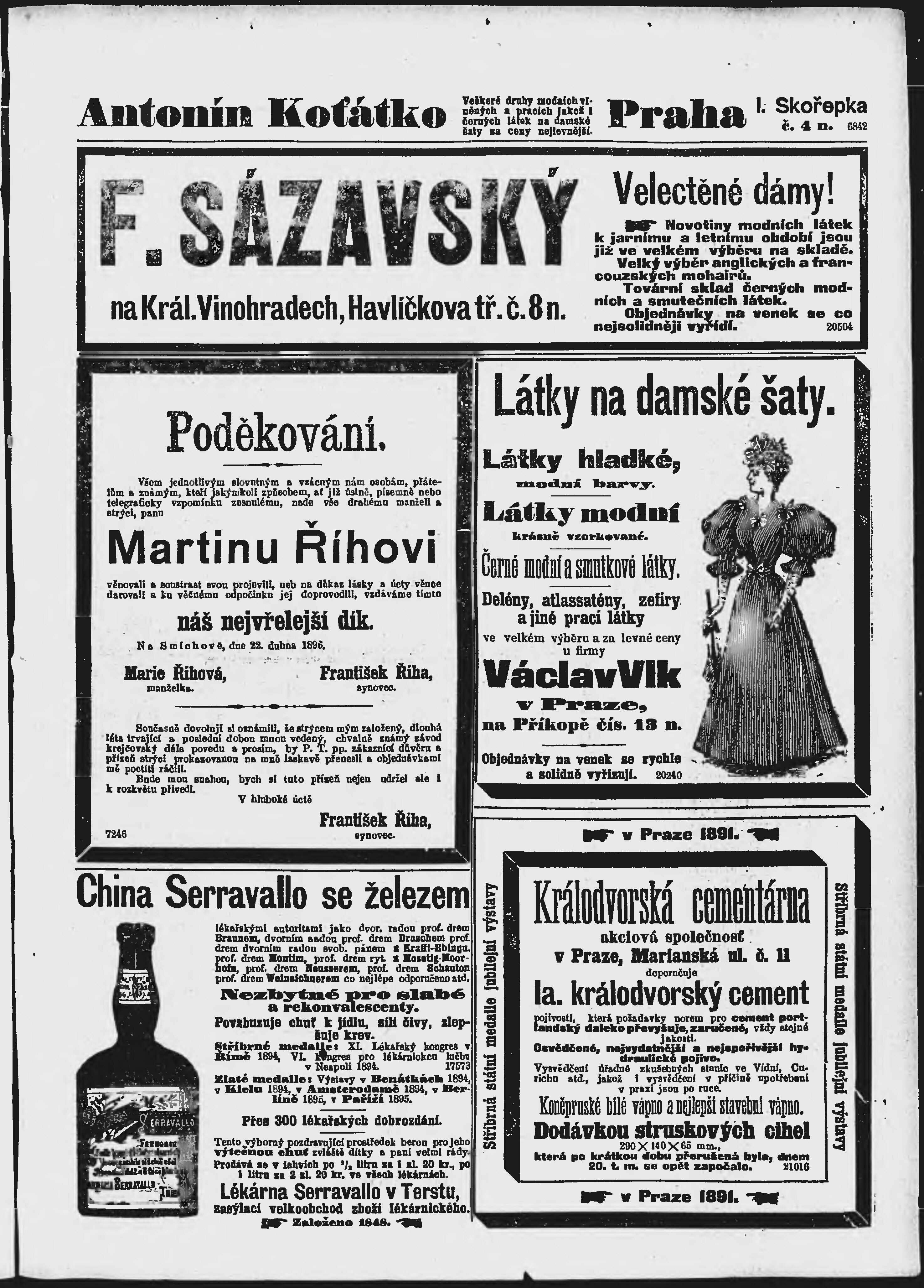 * Datum vydání výtisku: 23.4.1896 Číslo výtisku: 112 Poznámky k výtisku: ranní vydání;