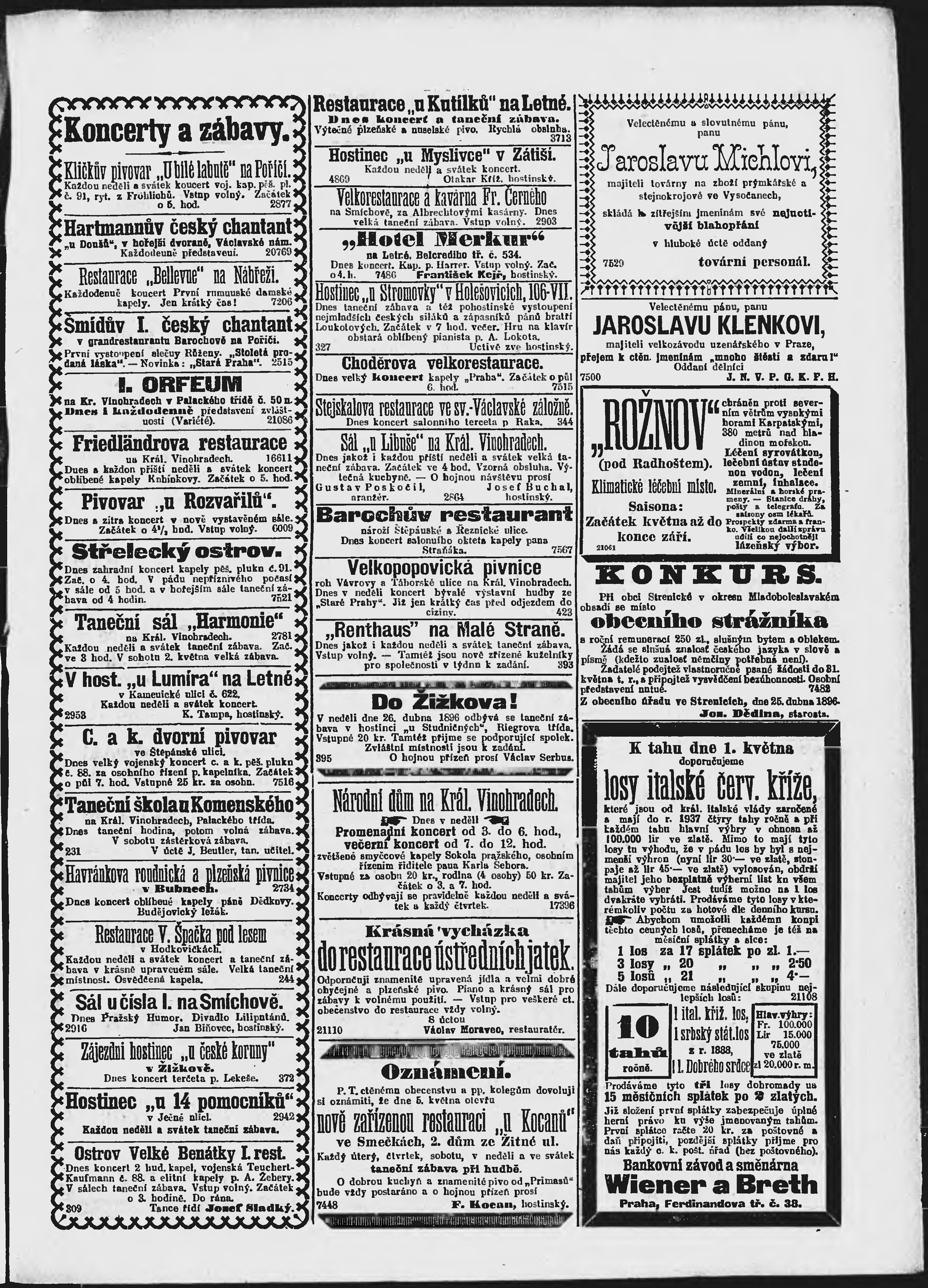 * Datum vydání výtisku: 26.4.1896 Číslo výtisku: 115 Poznámky k výtisku: ranní vydání;