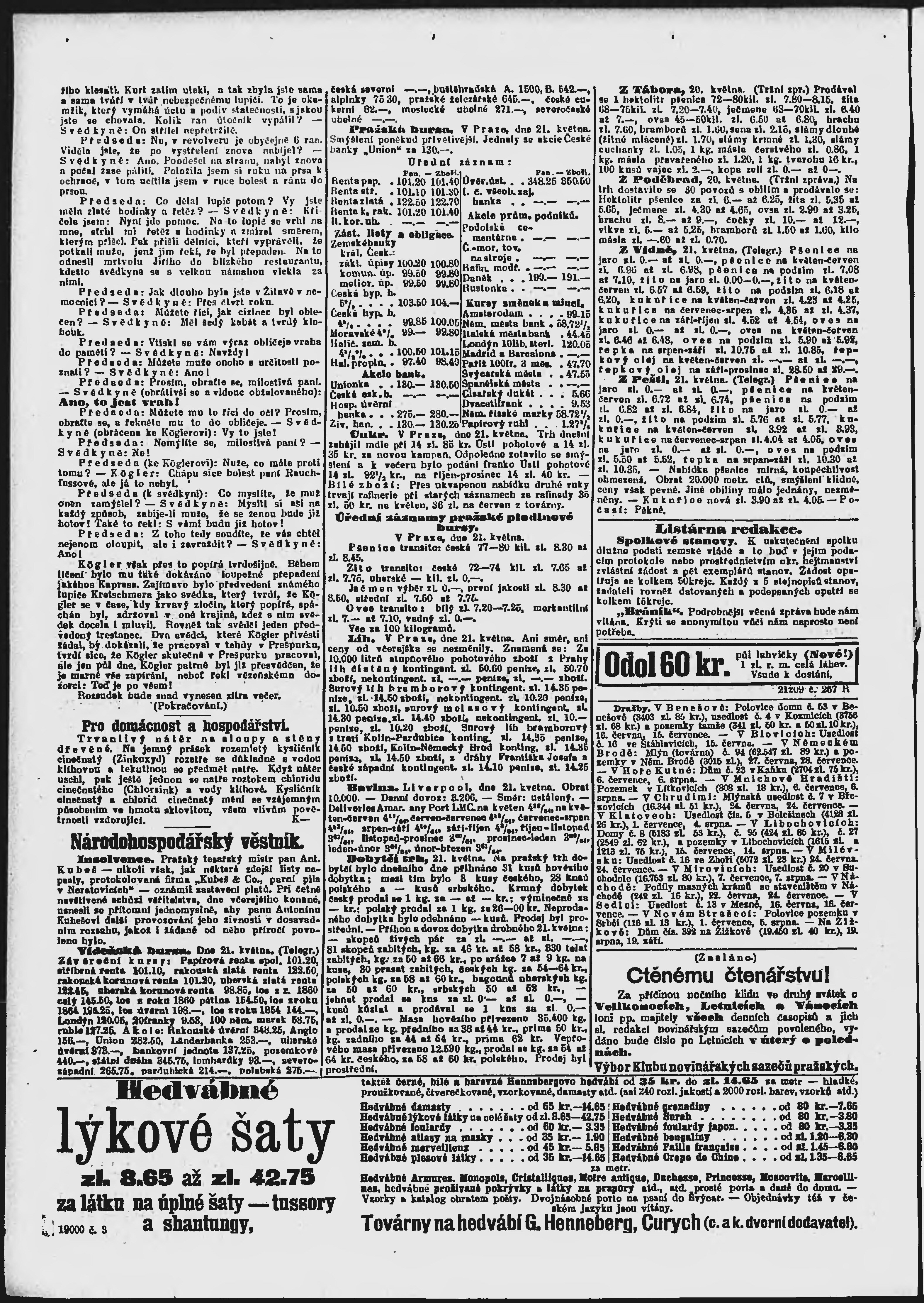* Datum vydání výtisku: 22.5.1896 Číslo výtisku: 141 Poznámky k výtisku: ranní vydání;