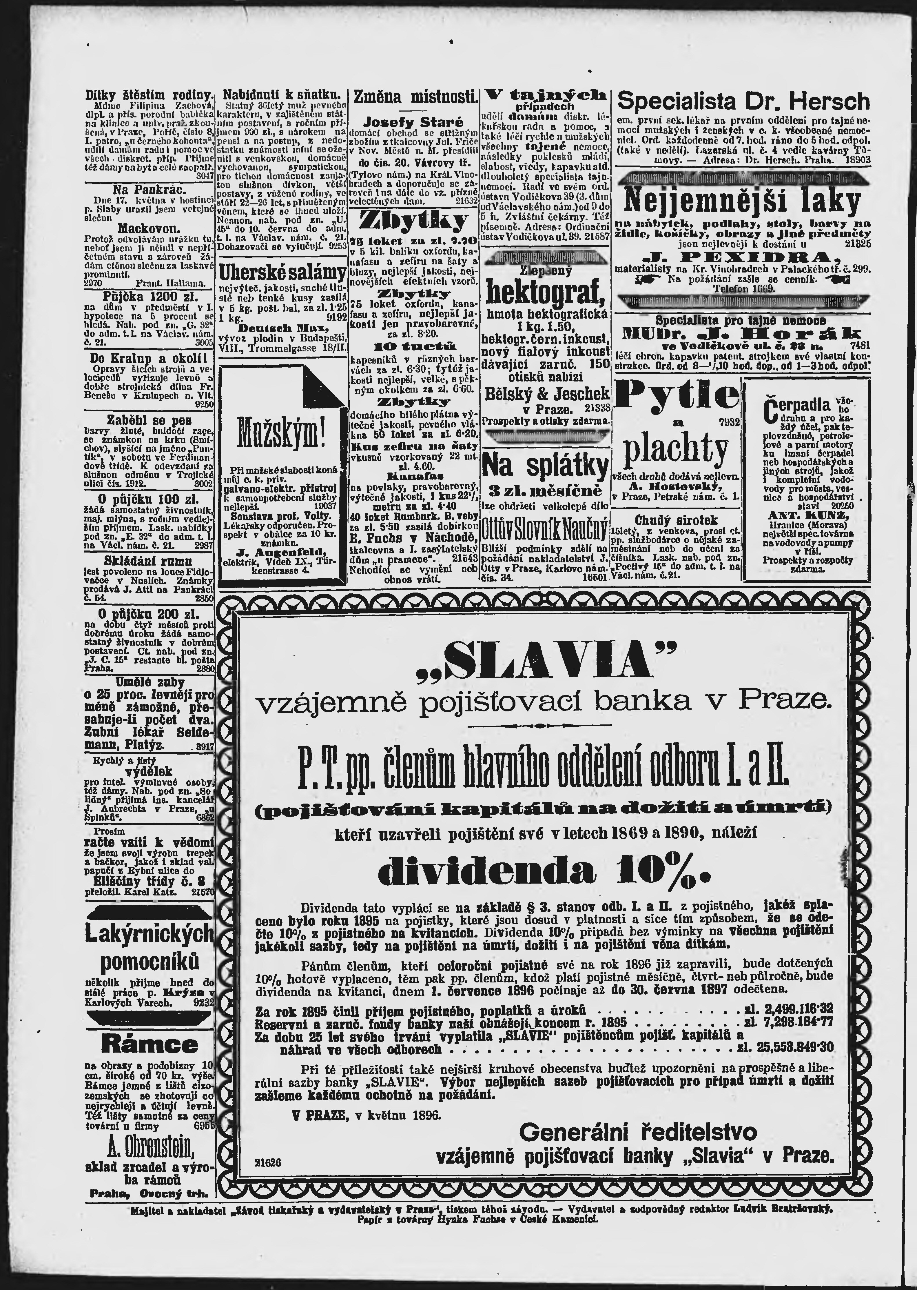 * Datum vydání výtisku: 22.5.1896 Číslo výtisku: 141 Poznámky k výtisku: ranní vydání;