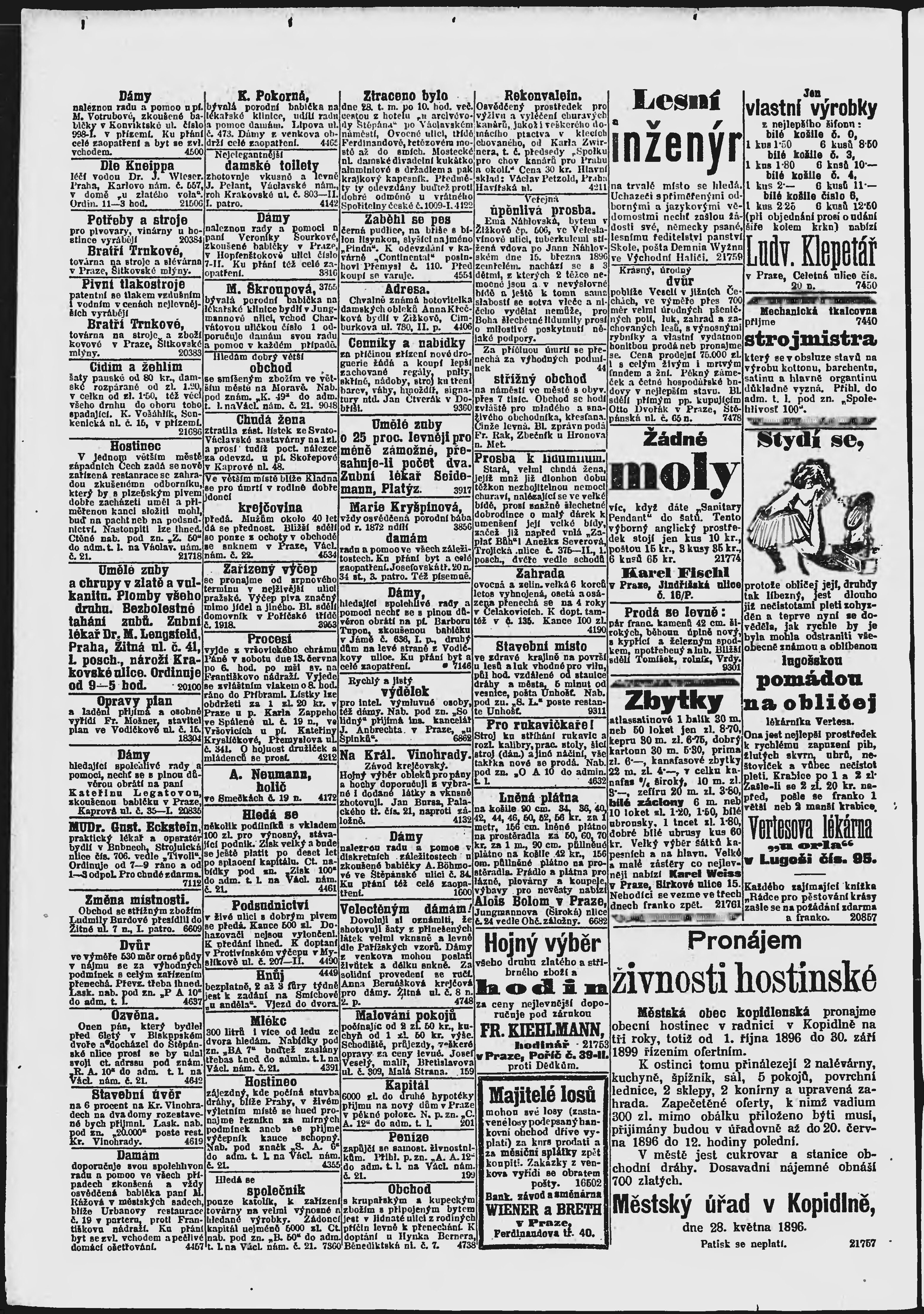 * Datum vydání výtisku: 31.5.1896 Číslo výtisku: 149 Poznámky k výtisku: ranní vydání;