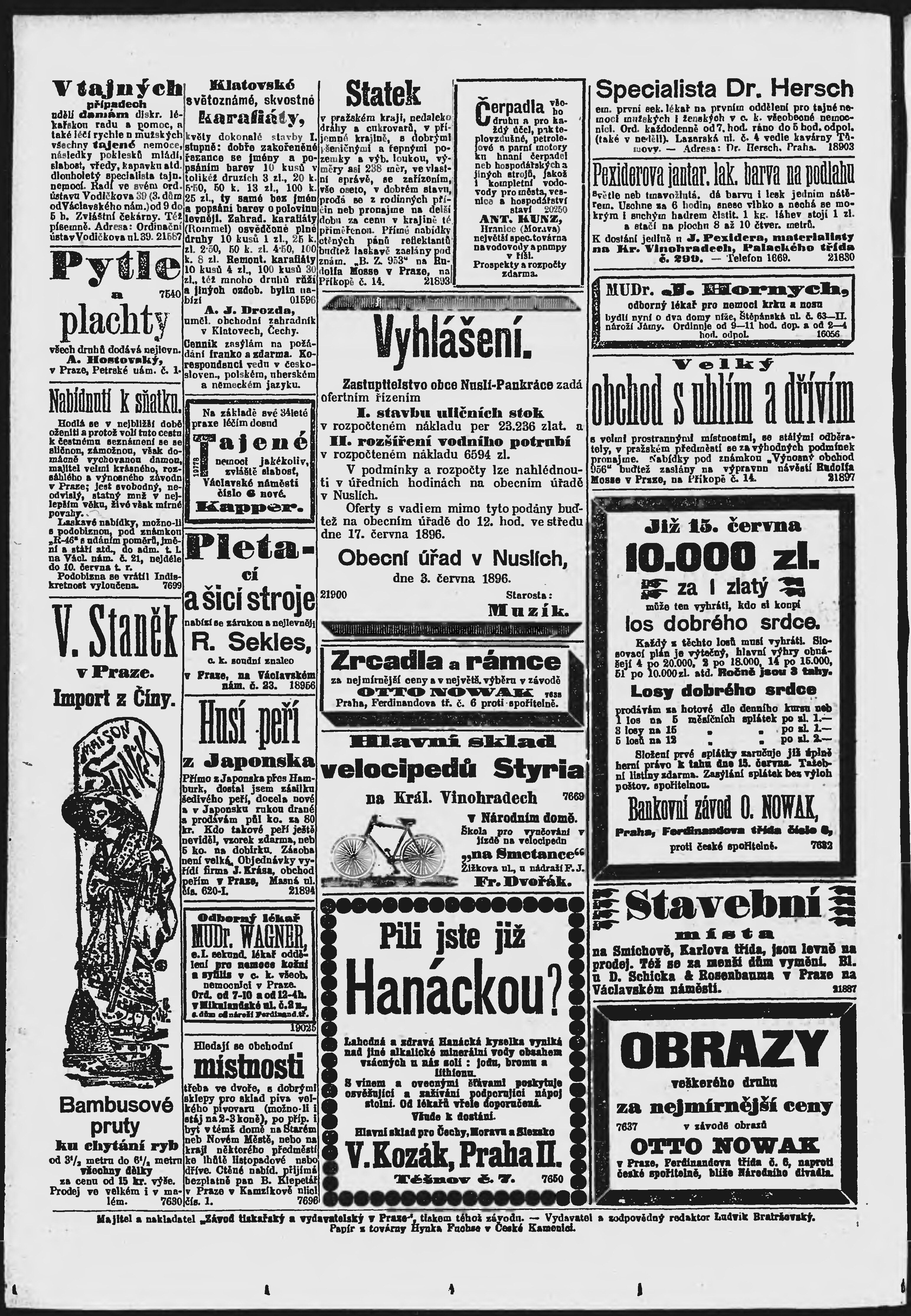 * Datum vydání výtisku: 4.6.1896 Číslo výtisku: 153 Poznámky k výtisku: ranní vydání;
