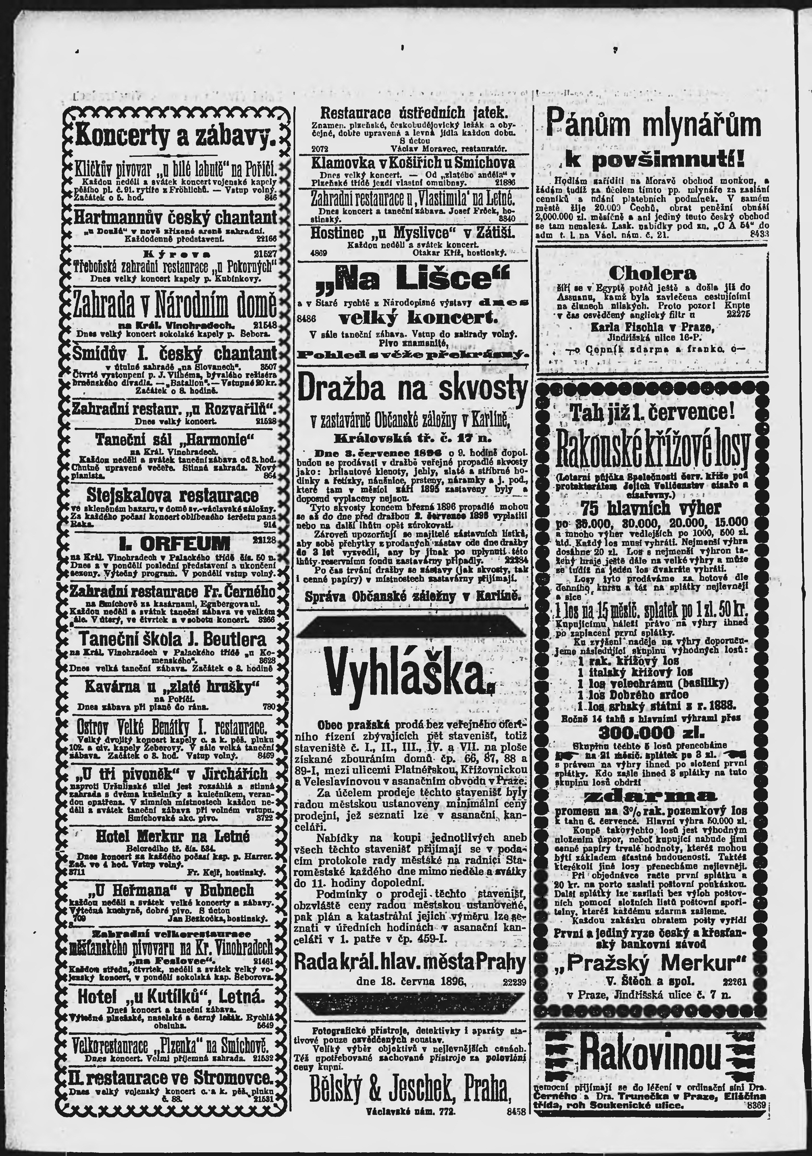 * Datum vydání výtisku: 21.6.1896 Číslo výtisku: 170 Poznámky k výtisku: ranní vydání;