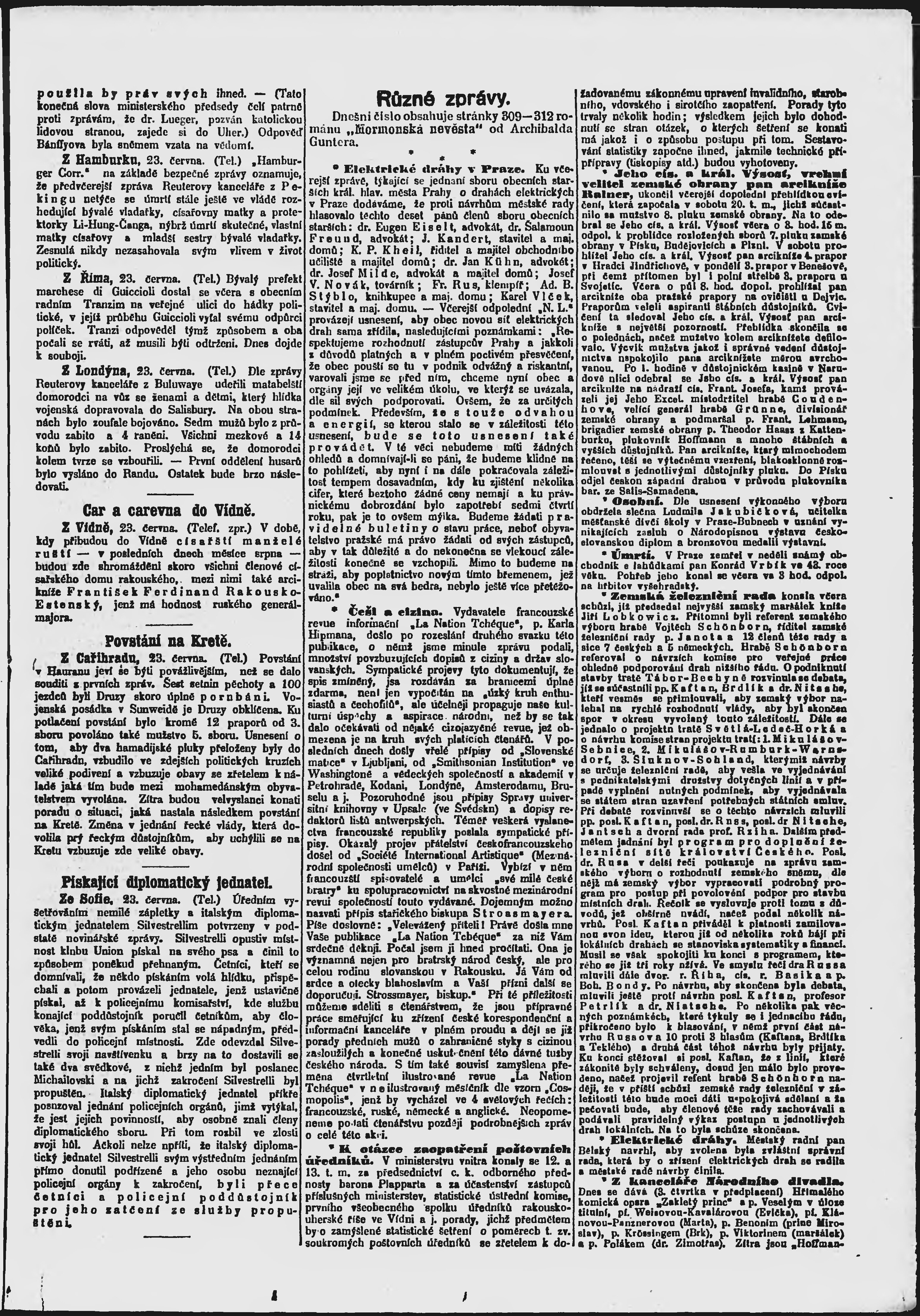 * Datum vydání výtisku: 24.6.1896 Číslo výtisku: 173 Poznámky k výtisku: ranní vydání;
