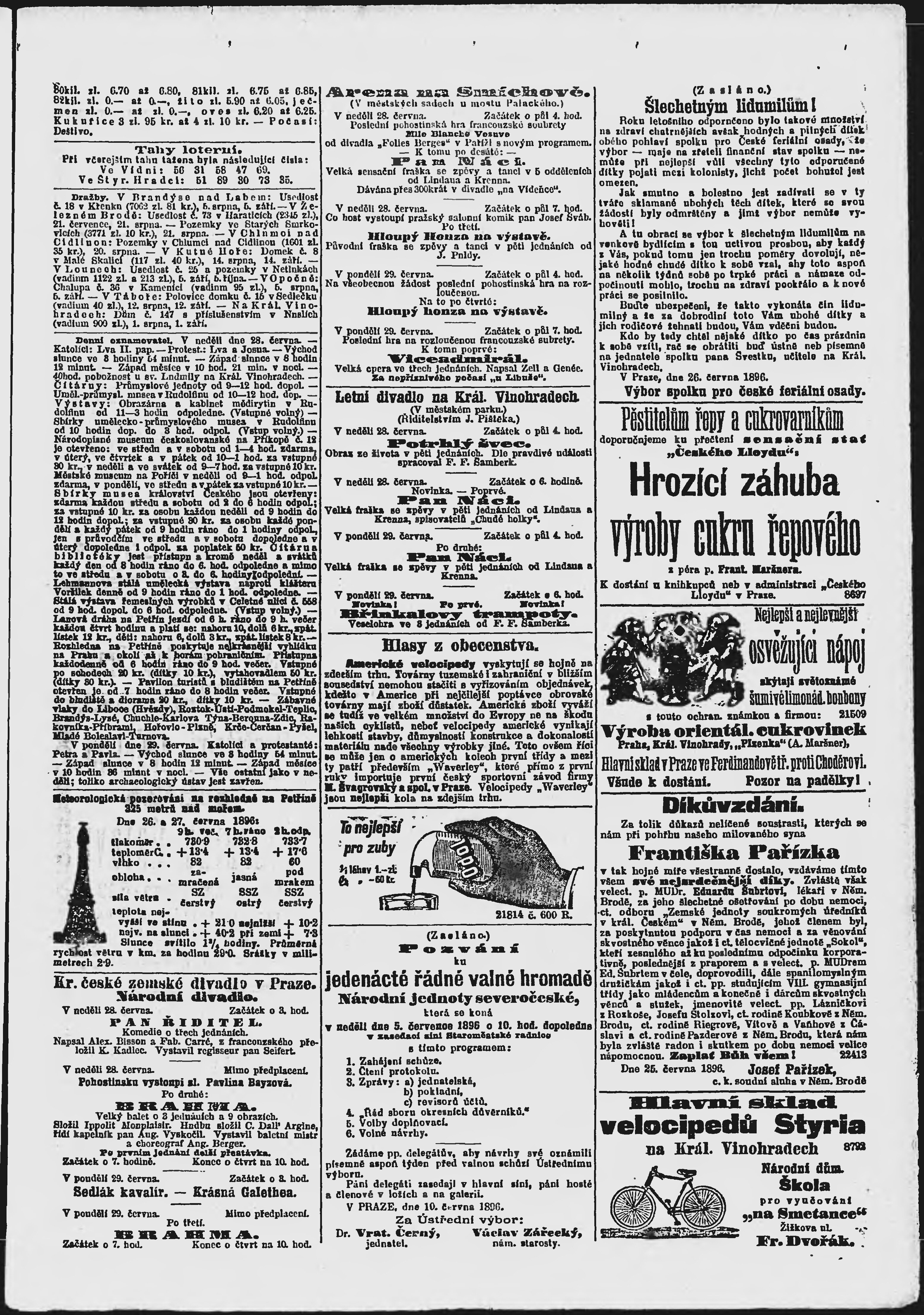 * Datum vydání výtisku: 28.6.1896 Číslo výtisku: 177 Poznámky k výtisku: ranní vydání;