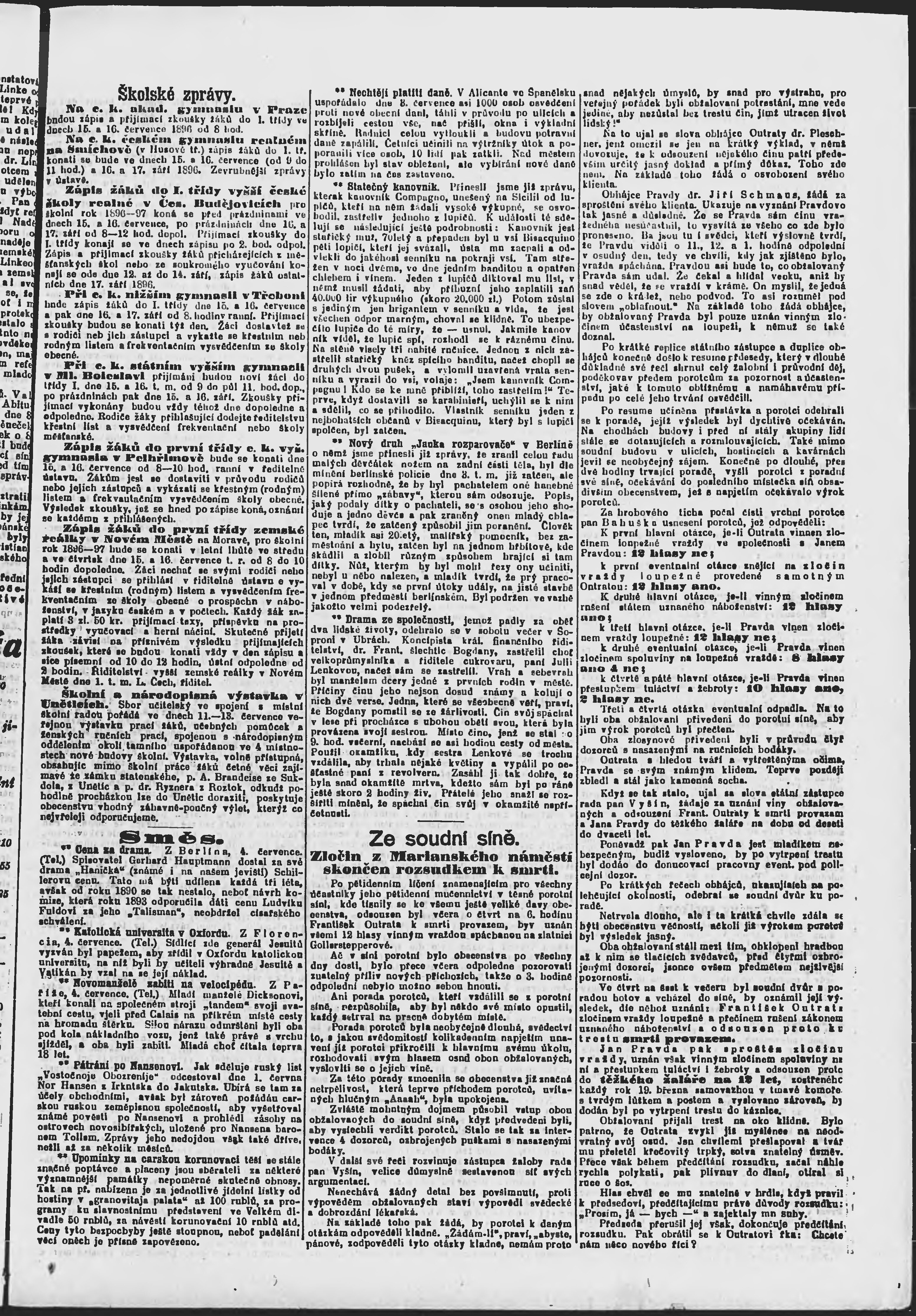 * Datum vydání výtisku: 5.7.1896 Číslo výtisku: 183 Poznámky k výtisku: ranní vydání;