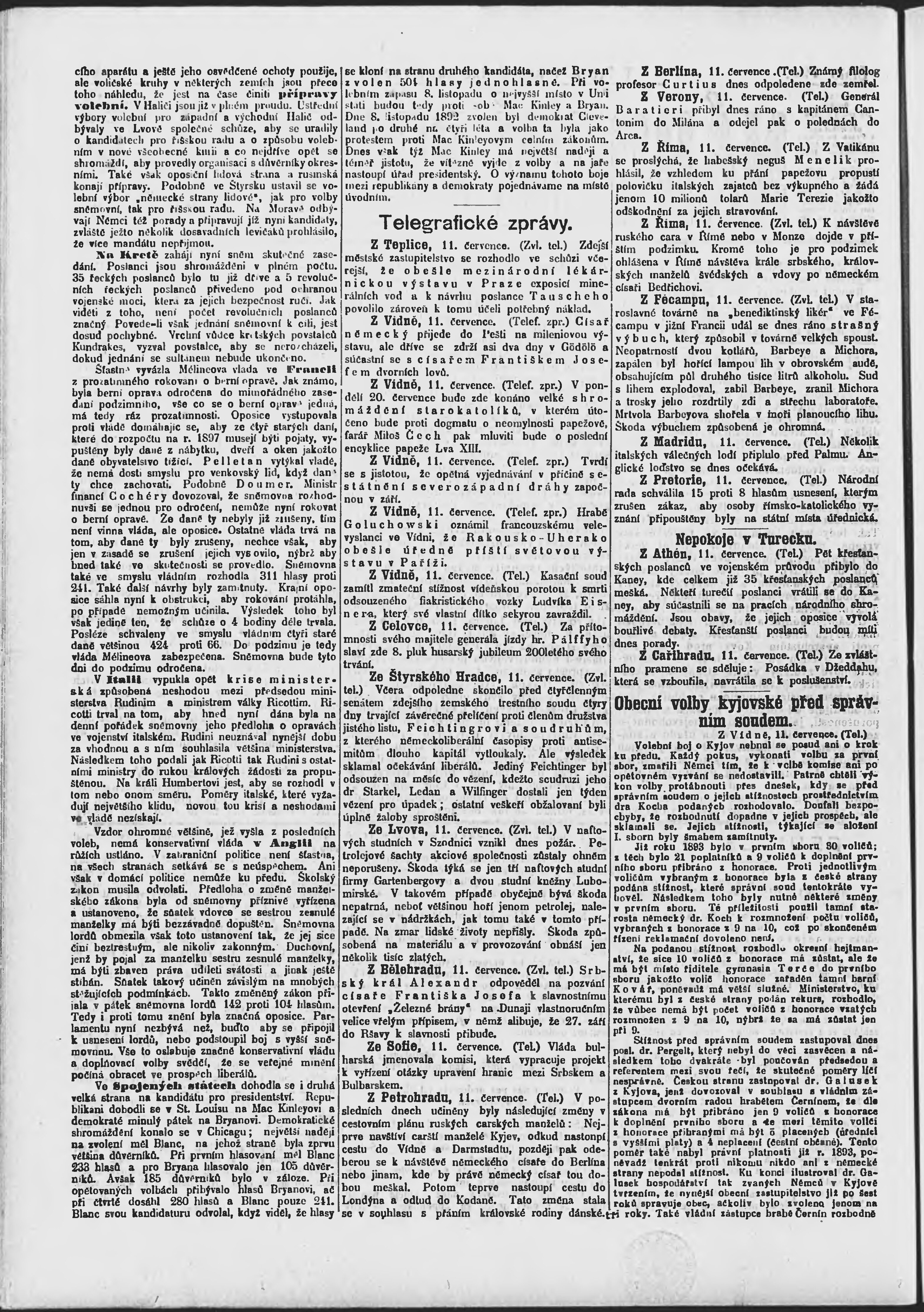 * Datum vydání výtisku: 12.7.1896 Číslo výtisku: 190 Poznámky k výtisku: ranní vydání;