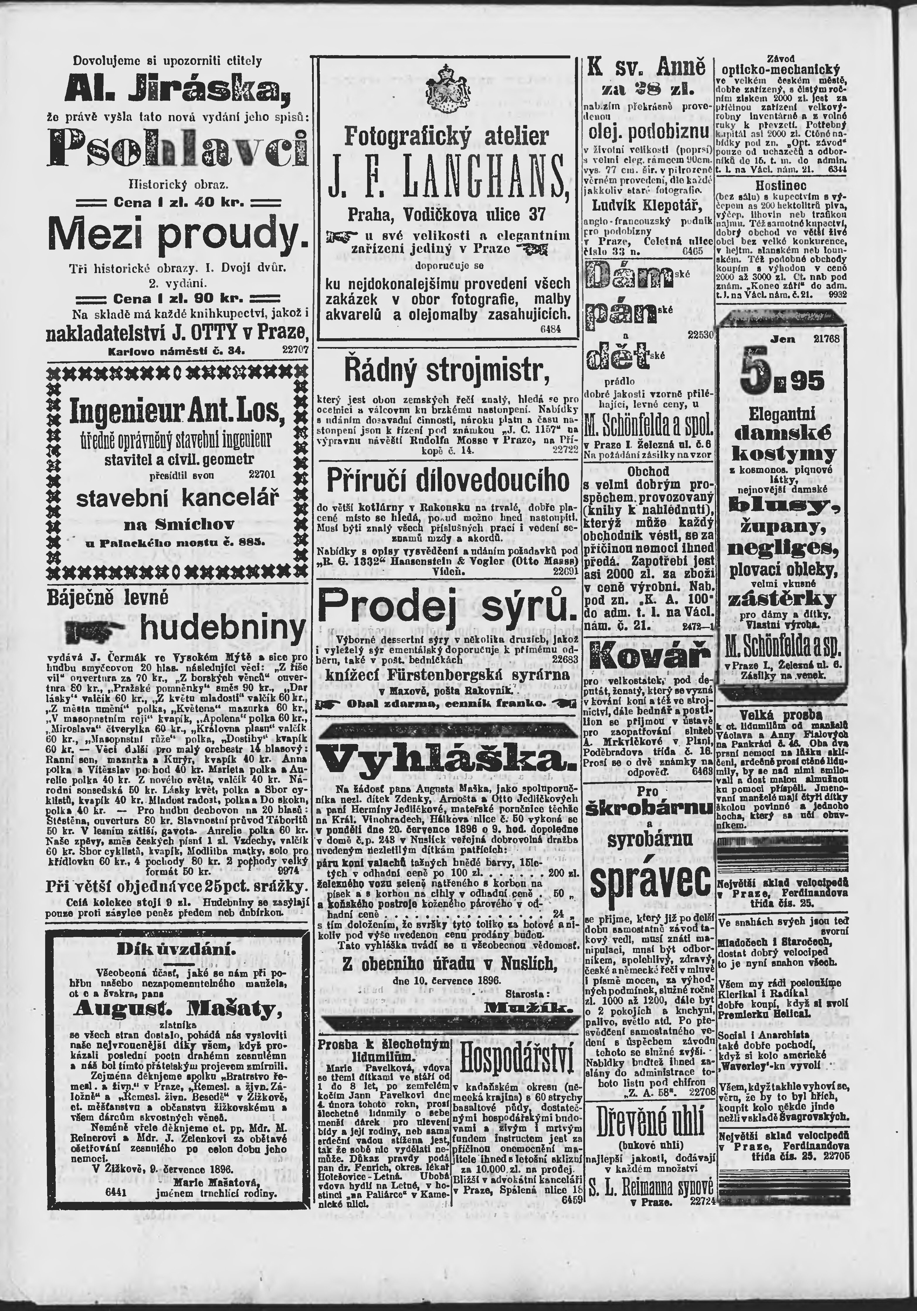 * Datum vydání výtisku: 12.7.1896 Číslo výtisku: 190 Poznámky k výtisku: ranní vydání;