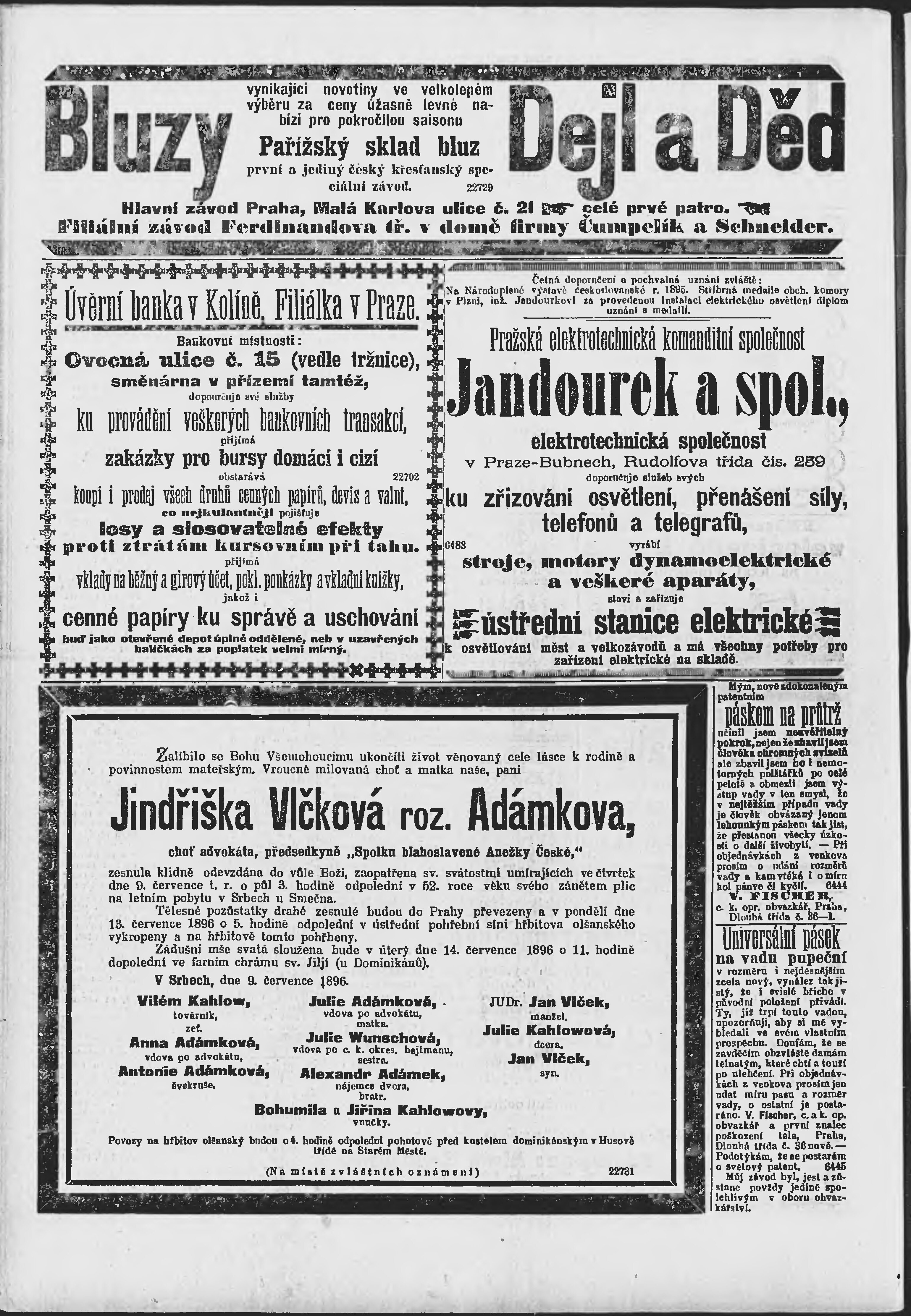 * Datum vydání výtisku: 12.7.1896 Číslo výtisku: 190 Poznámky k výtisku: ranní vydání;