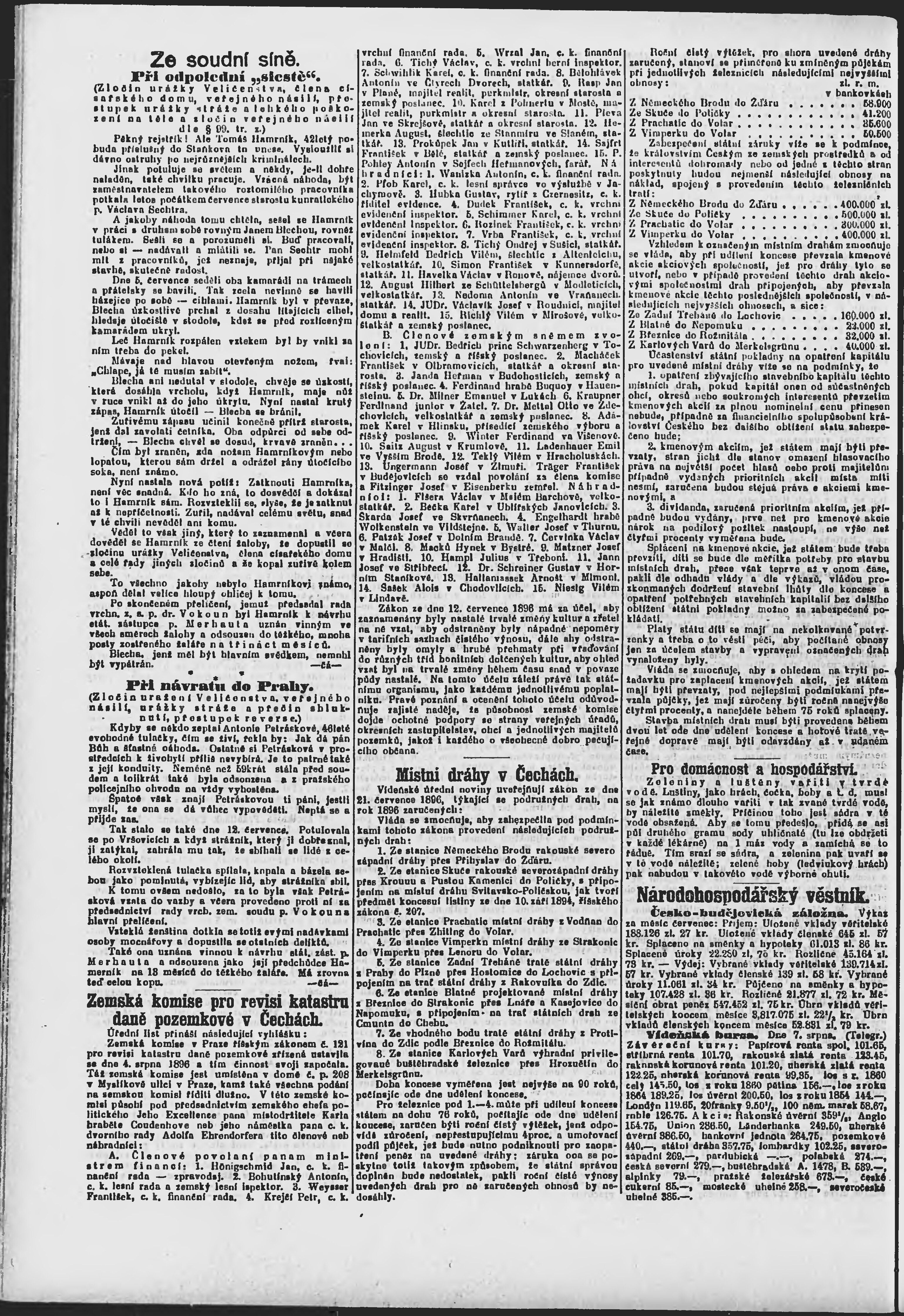 * Datum vydání výtisku: 8.8.1896 Číslo výtisku: 217 Poznámky k výtisku: ranní vydání;