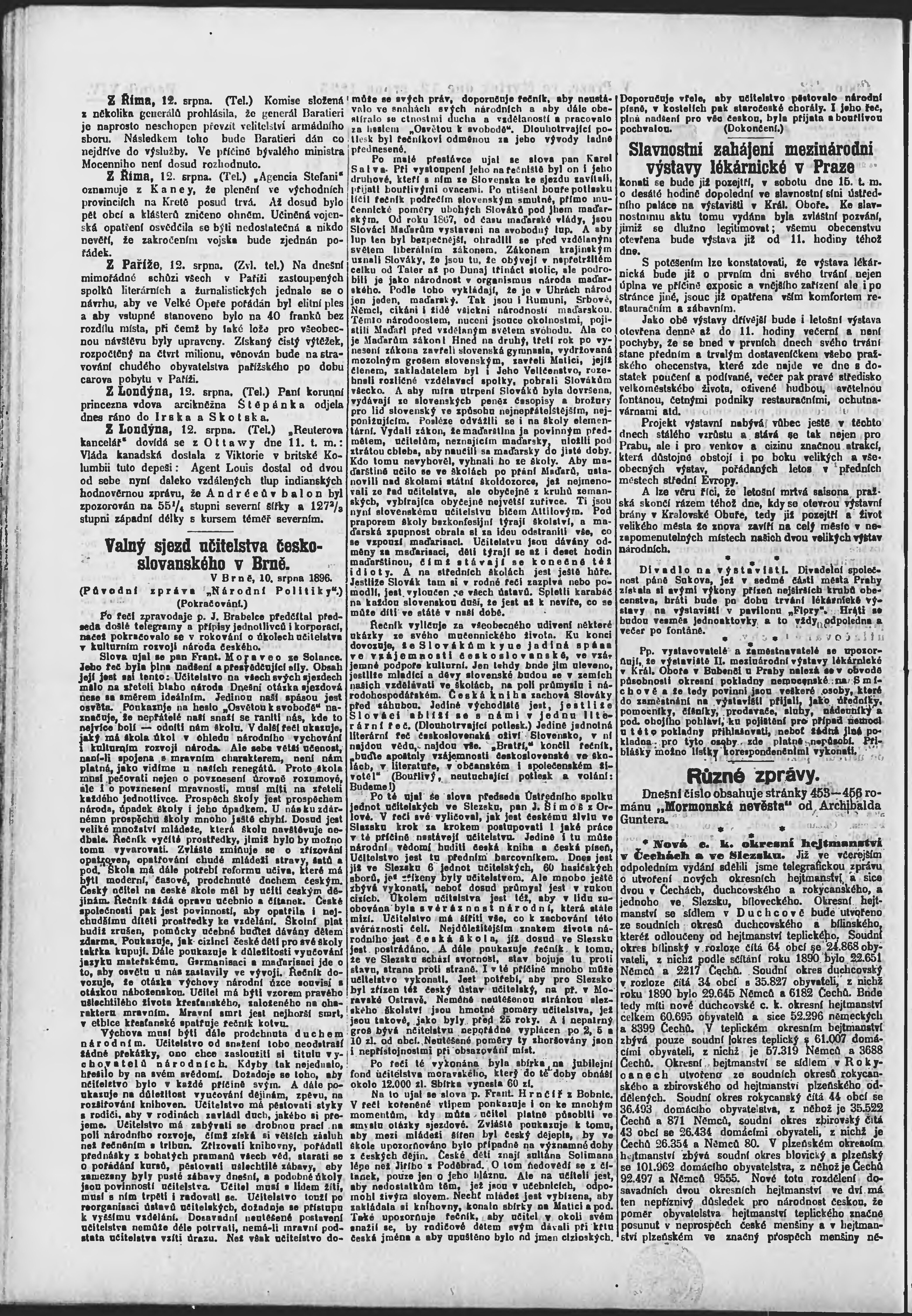 * Datum vydání výtisku: 13.8.1896 Číslo výtisku: 222 Poznámky k výtisku: ranní vydání;