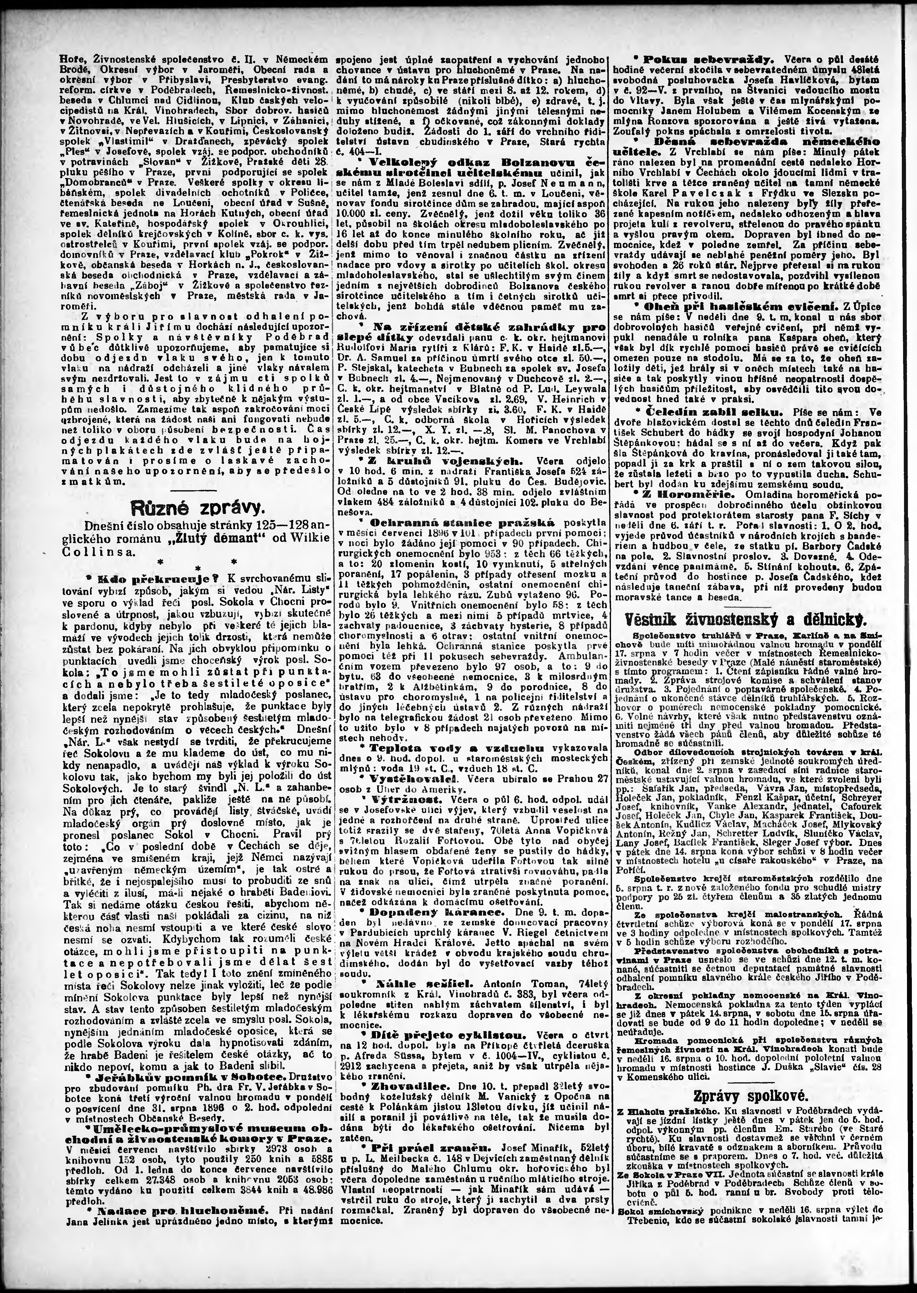 * Datum vydání výtisku: 14.8.1896 Číslo výtisku: 223 Poznámky k výtisku: odpolední vydání;