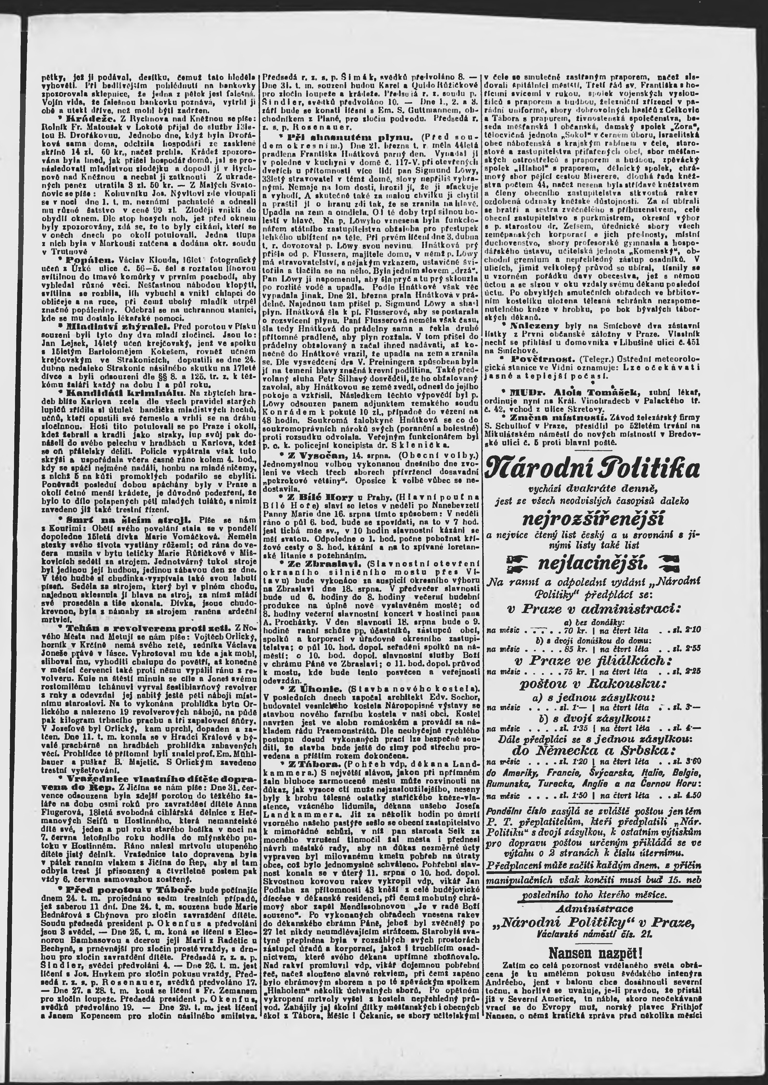 * Datum vydání výtisku: 15.8.1896 Číslo výtisku: 224 Poznámky k výtisku: ranní vydání;