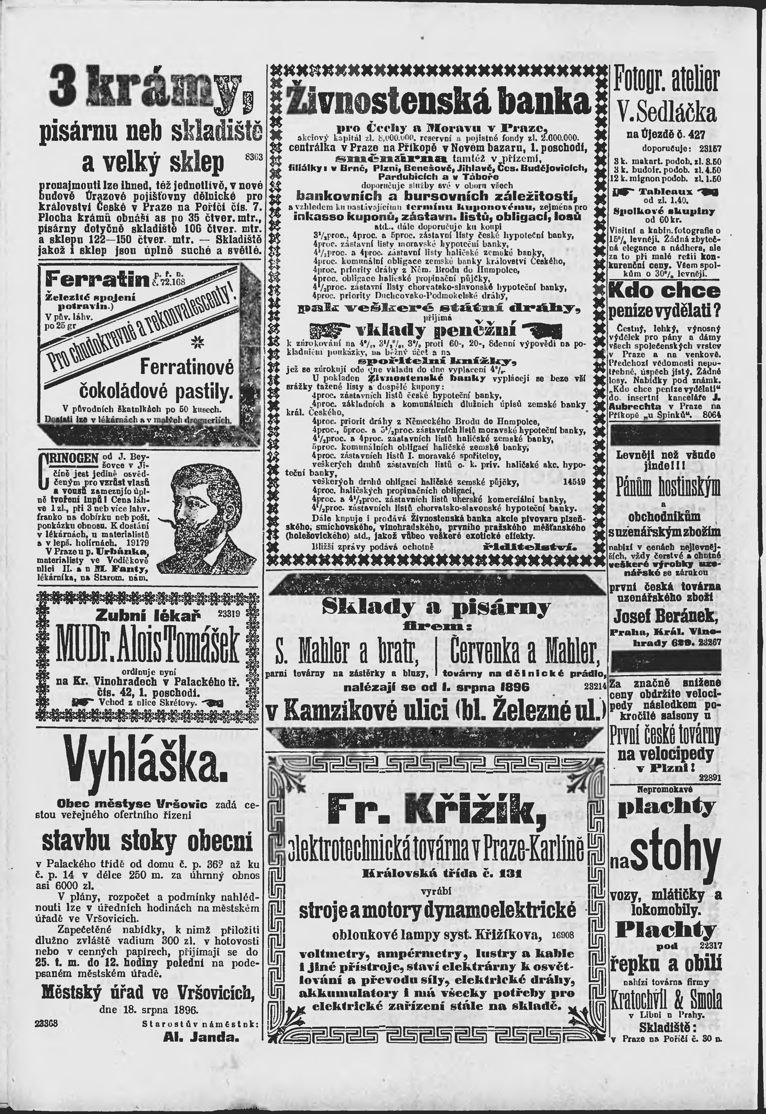 * Datum vydání výtisku: 19.8.1896 Číslo výtisku: 228 Poznámky k výtisku: ranní vydání;