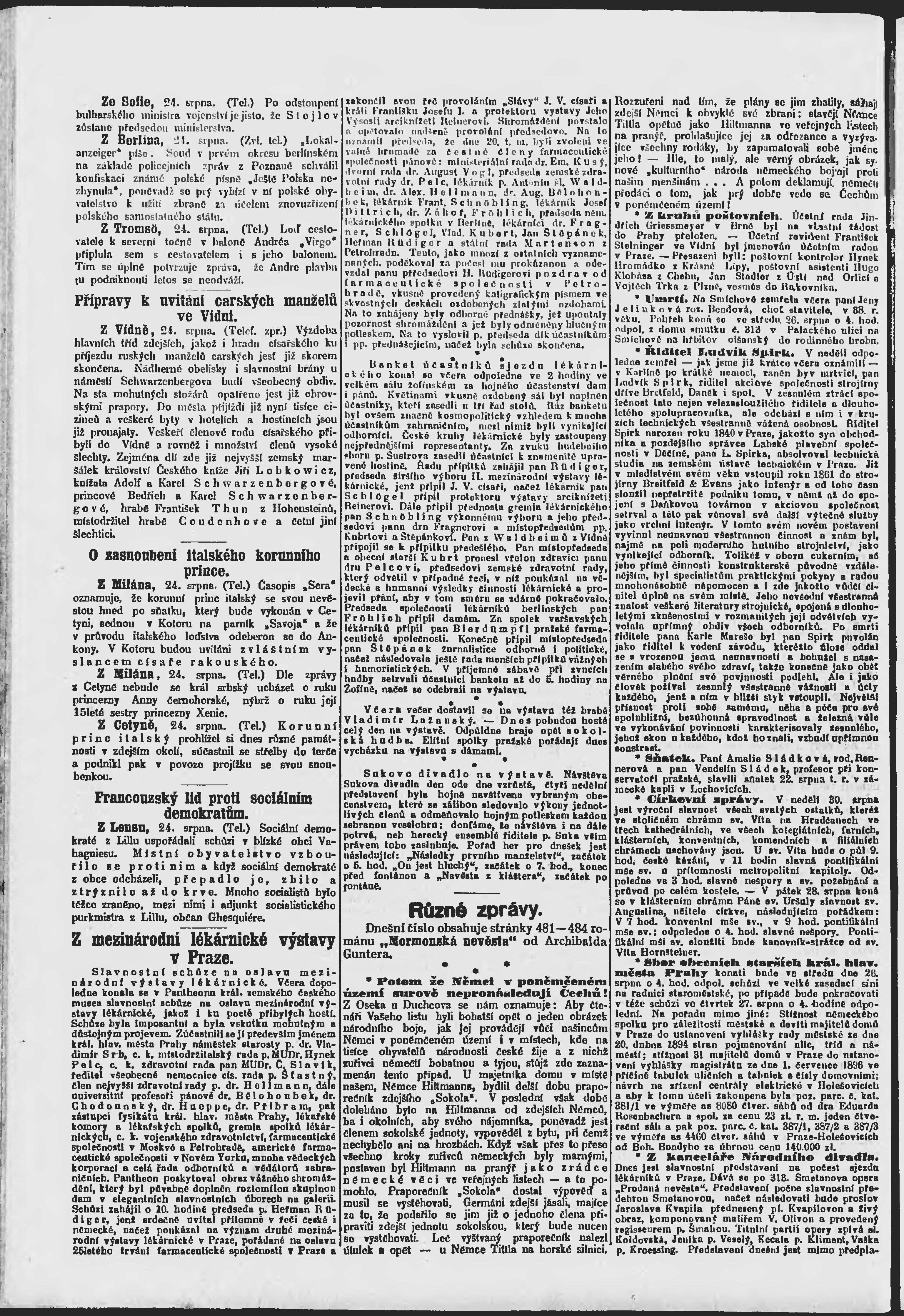 * Datum vydání výtisku: 25.8.1896 Číslo výtisku: 234 Poznámky k výtisku: ranní vydání;
