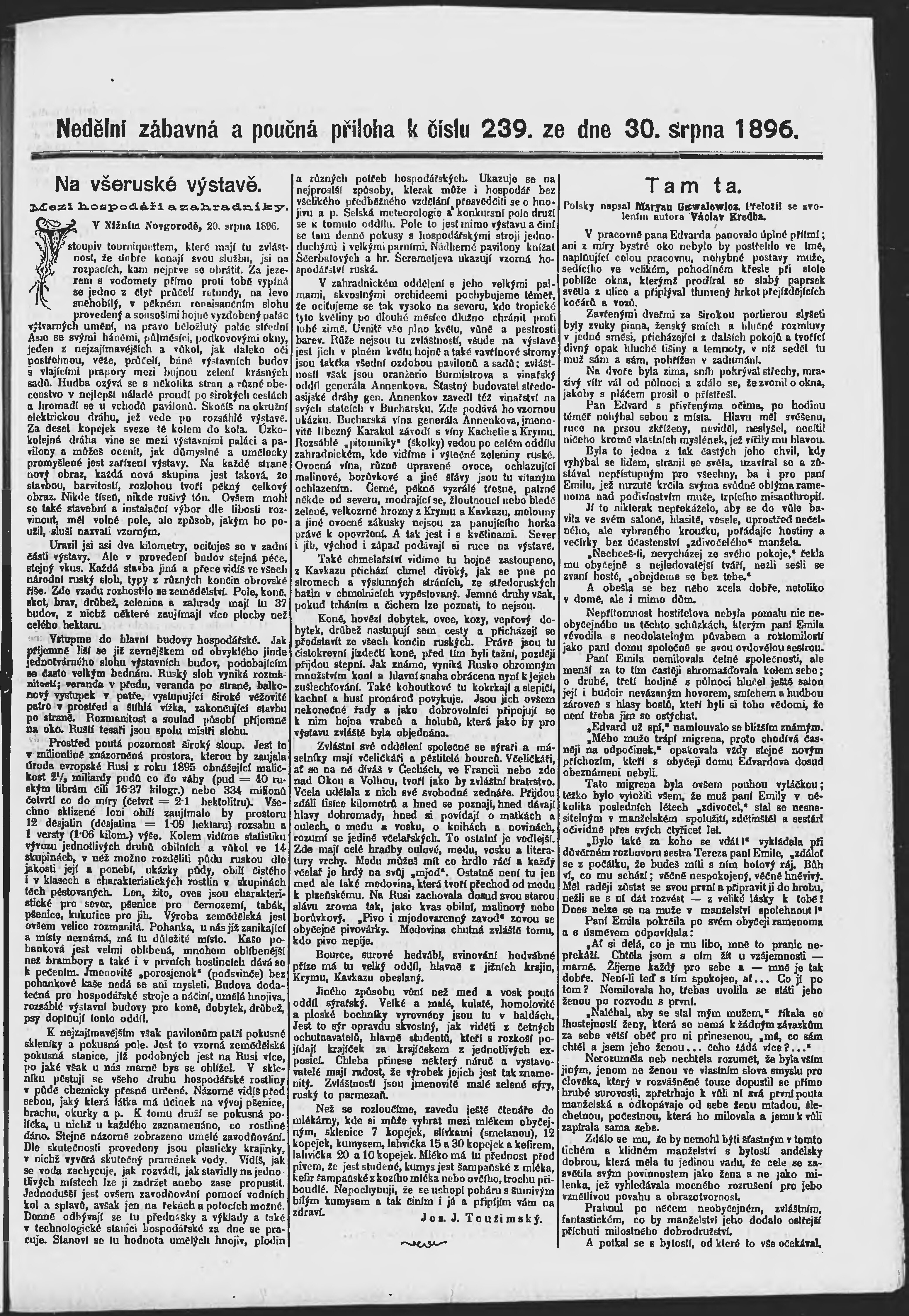 * Datum vydání výtisku: 30.8.1896 Číslo výtisku: 239 Poznámky k výtisku: ranní vydání;
