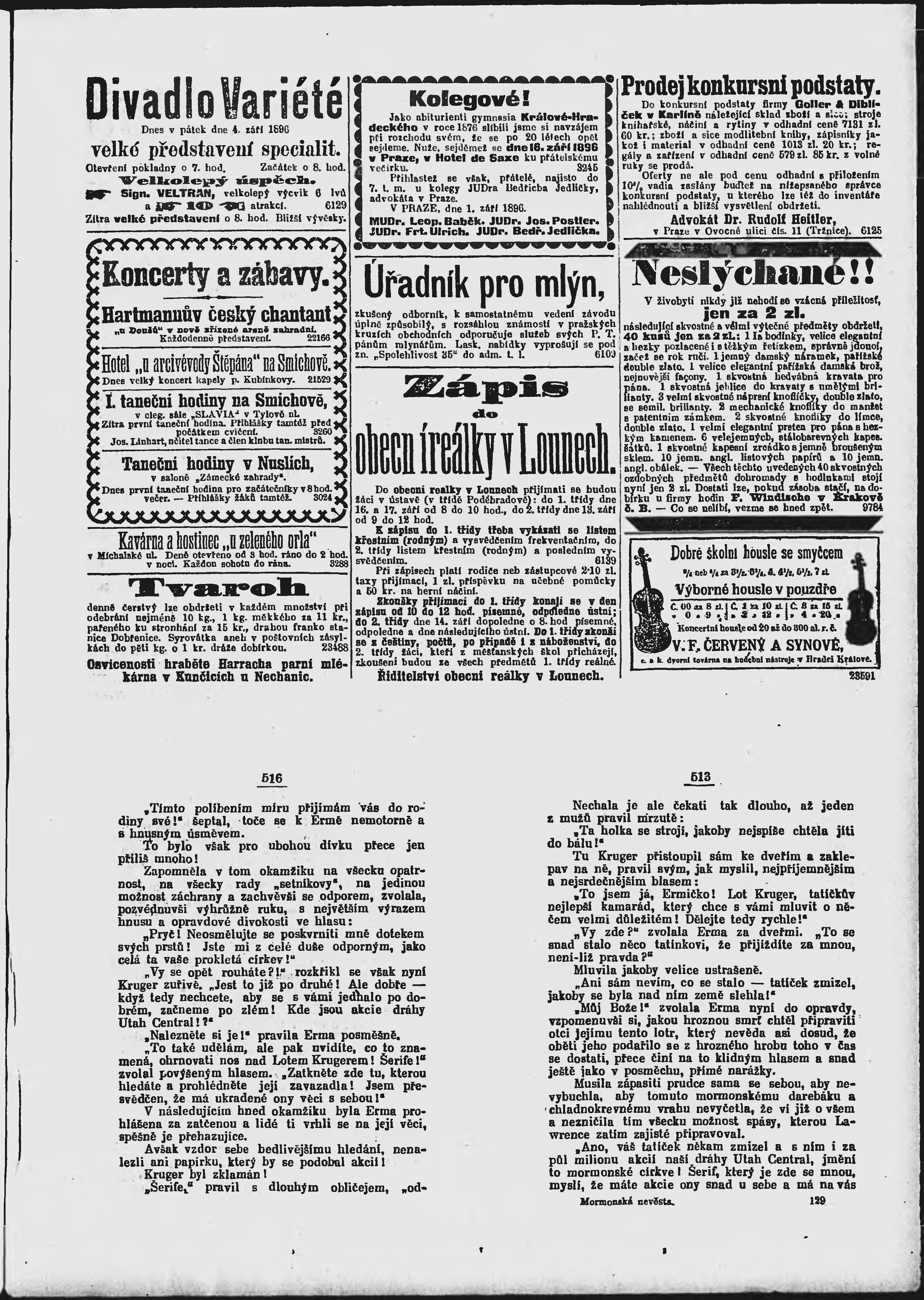 * Datum vydání výtisku: 4.9.1896 Číslo výtisku: 244 Poznámky k výtisku: ranní vydání;