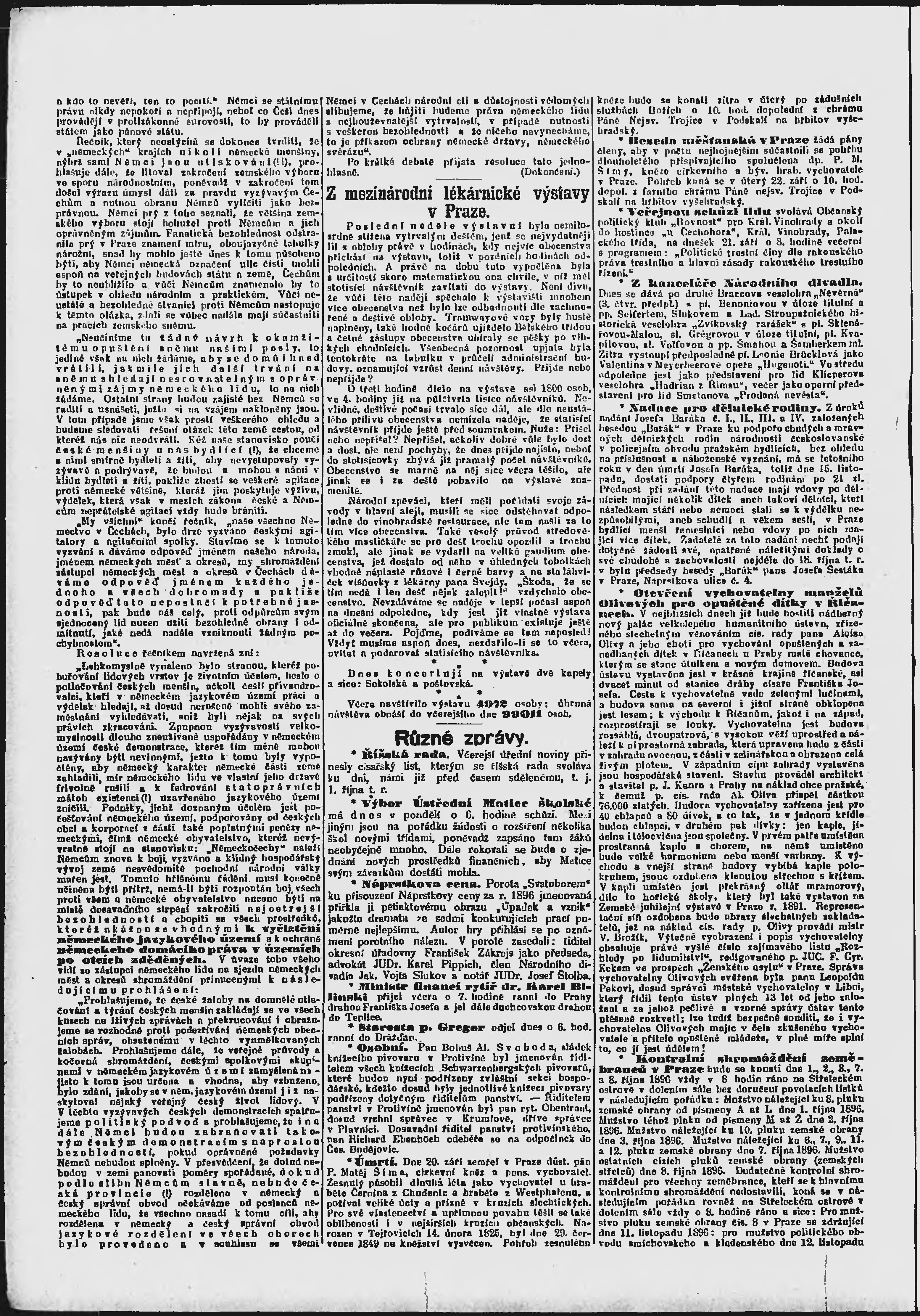 * Datum vydání výtisku: 21.9.1896 Číslo výtisku: 261 Poznámky k výtisku: ranní vydání;