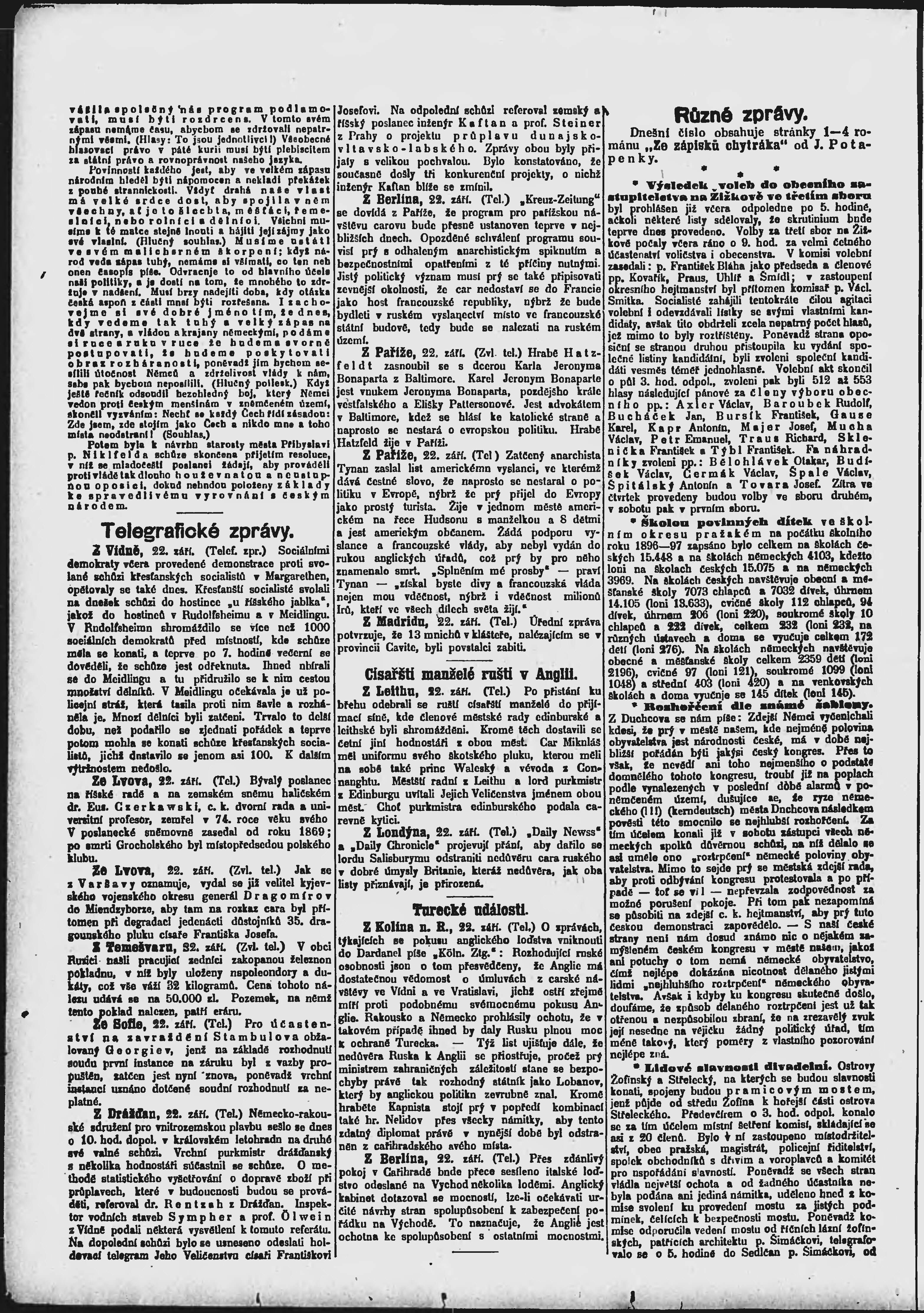 * Datum vydání výtisku: 23.9.1896 Číslo výtisku: 263 Poznámky k výtisku: ranní vydání;