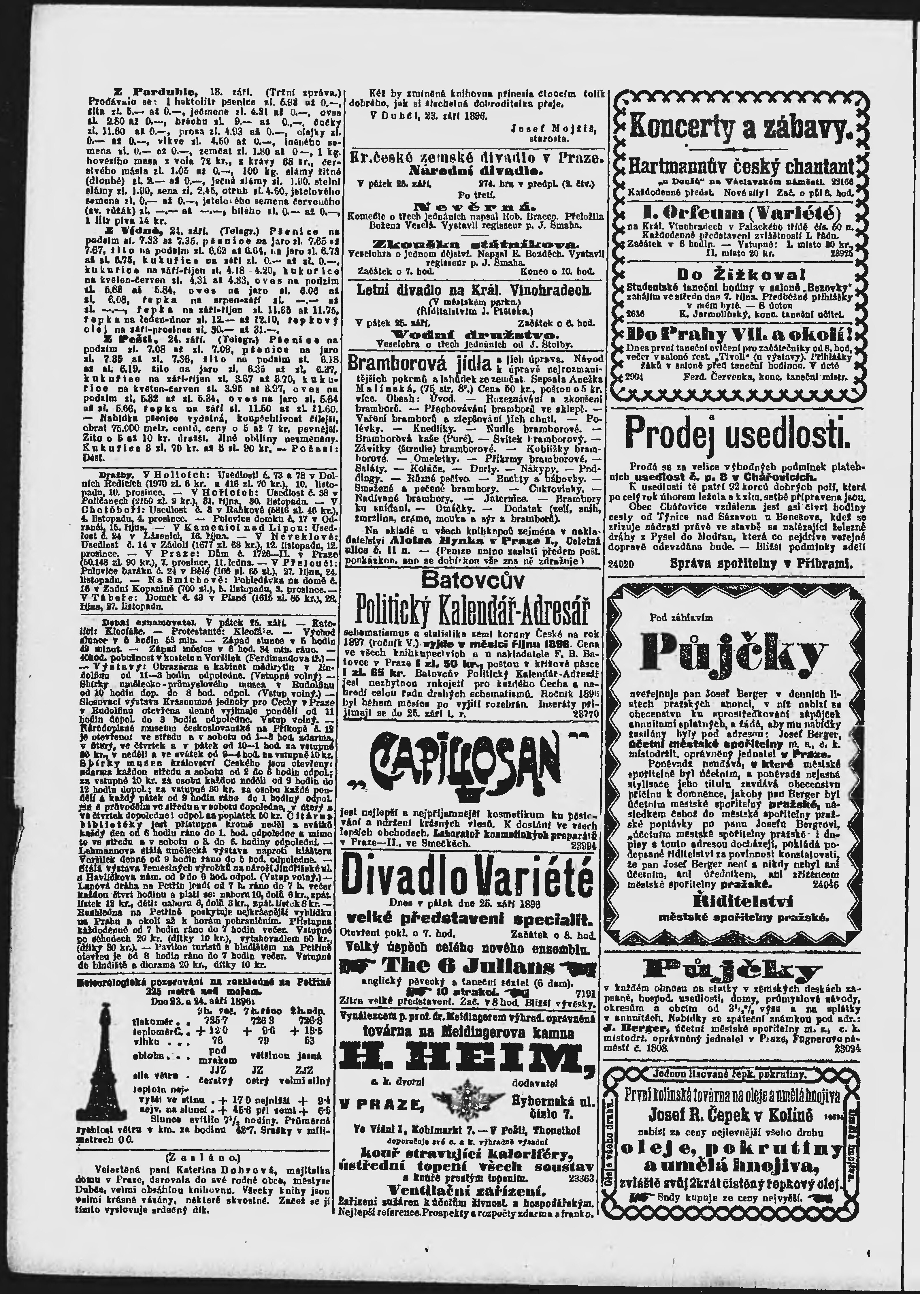 * Datum vydání výtisku: 25.9.1896 Číslo výtisku: 265 Poznámky k výtisku: ranní vydání;