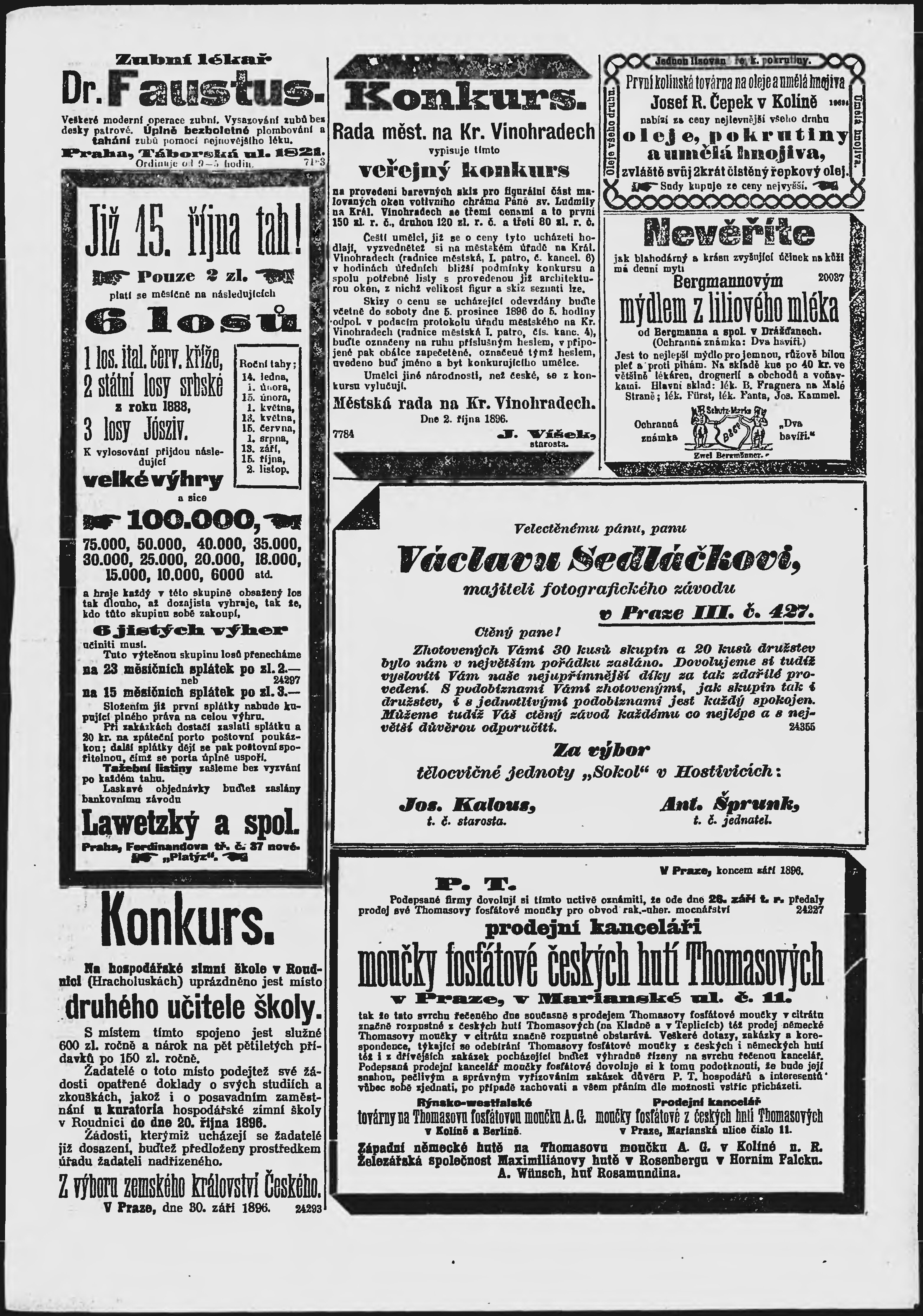 * Datum vydání výtisku: 9.10.1896 Číslo výtisku: 278 Poznámky k výtisku: ranní vydání;