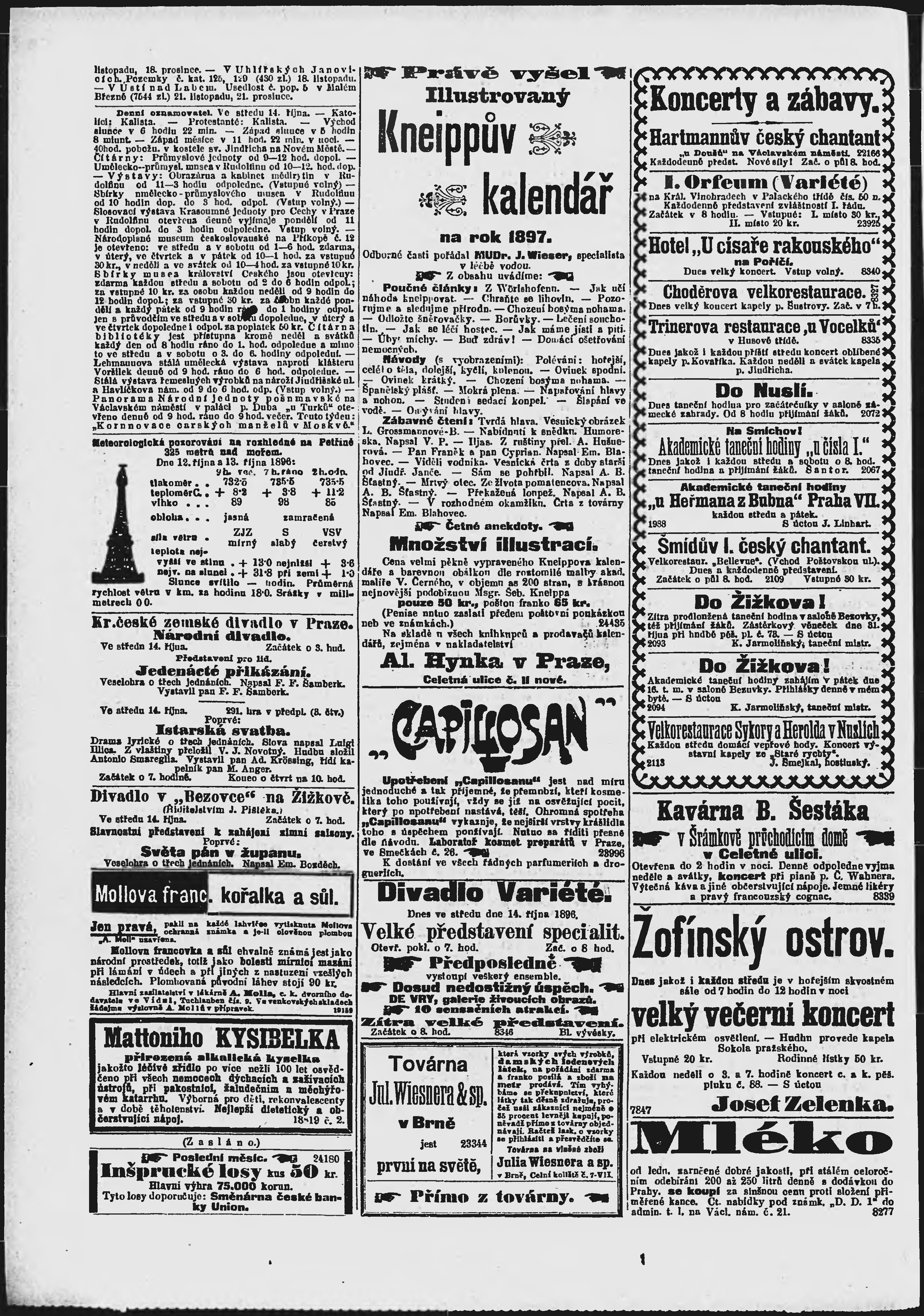 * Datum vydání výtisku: 14.10.1896 Číslo výtisku: 283 Poznámky k výtisku: ranní vydání;