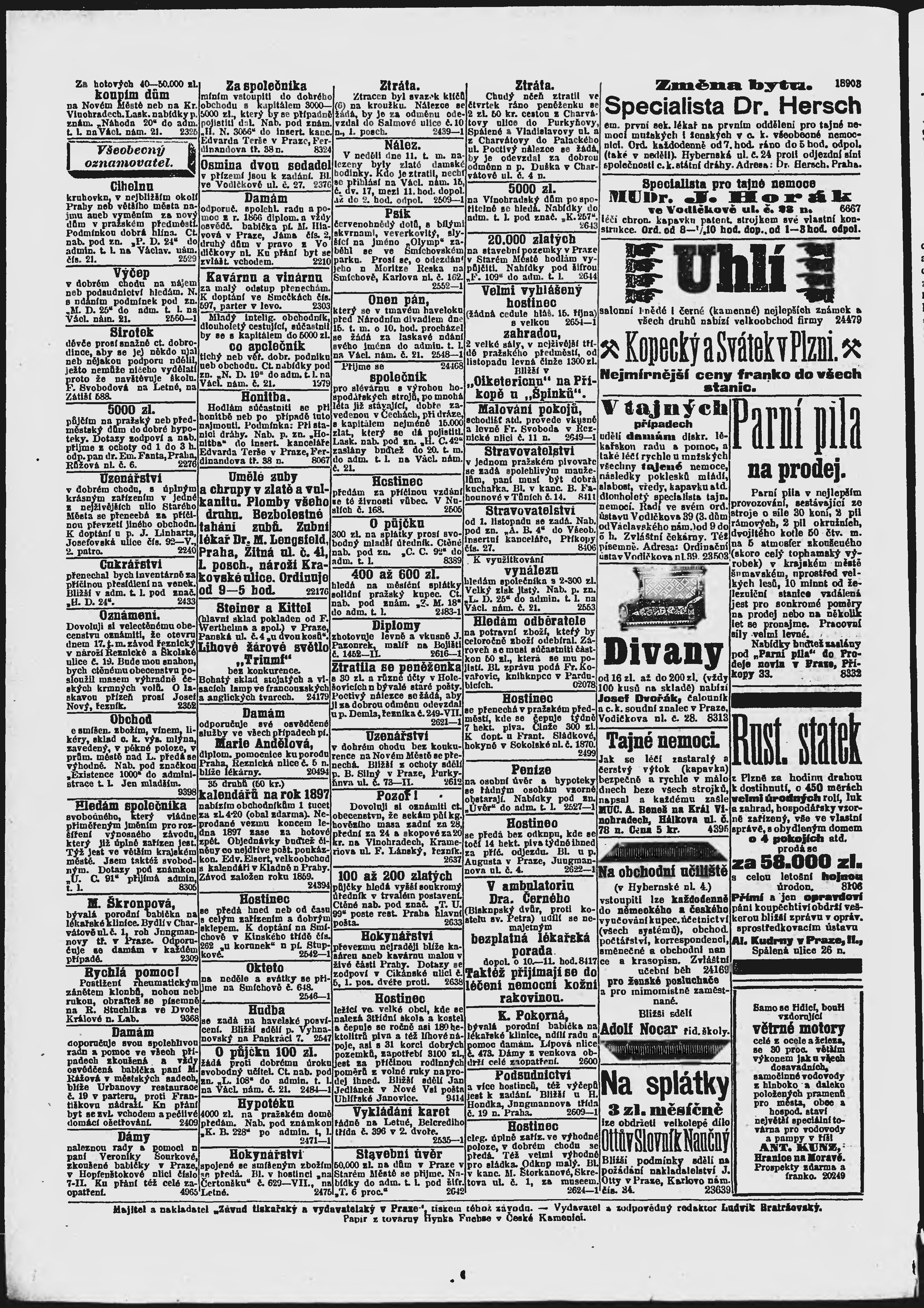 * Datum vydání výtisku: 16.10.1896 Číslo výtisku: 285 Poznámky k výtisku: ranní vydání;