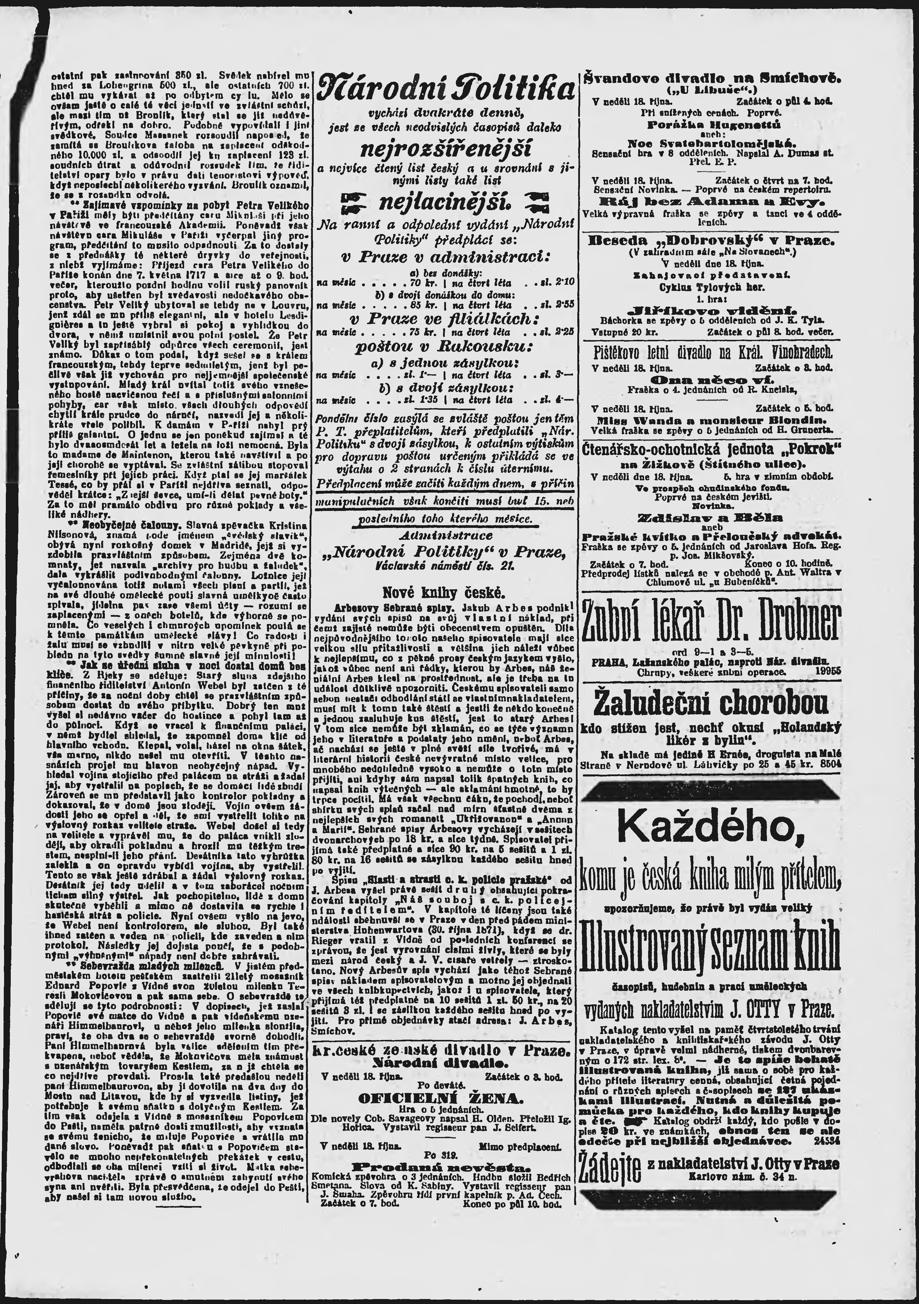 * Datum vydání výtisku: 18.10.1896 Číslo výtisku: 287 Poznámky k výtisku: ranní vydání;