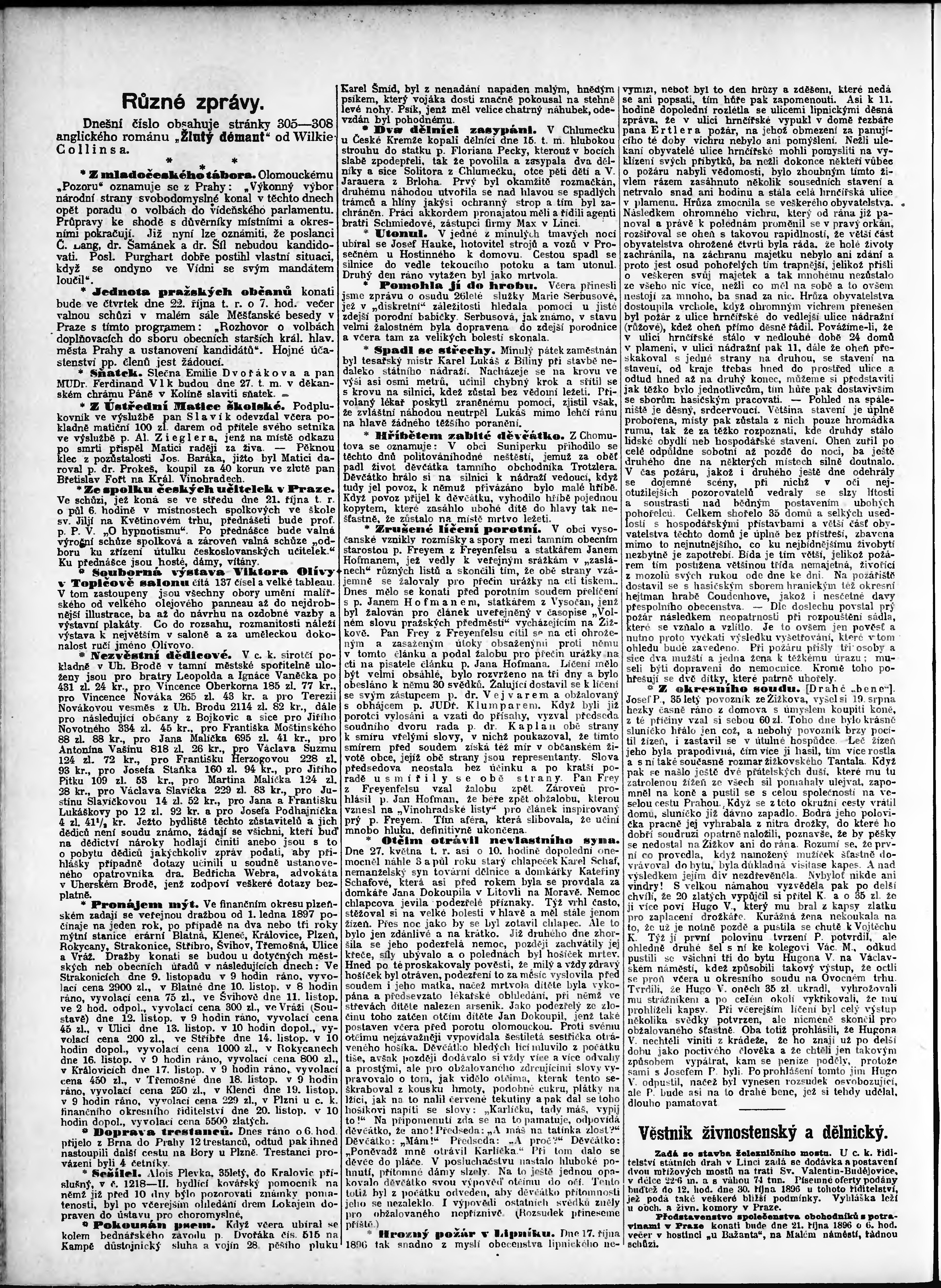 * Datum vydání výtisku: 20.10.1896 Číslo výtisku: 289 Poznámky k výtisku: odpolední vydání;