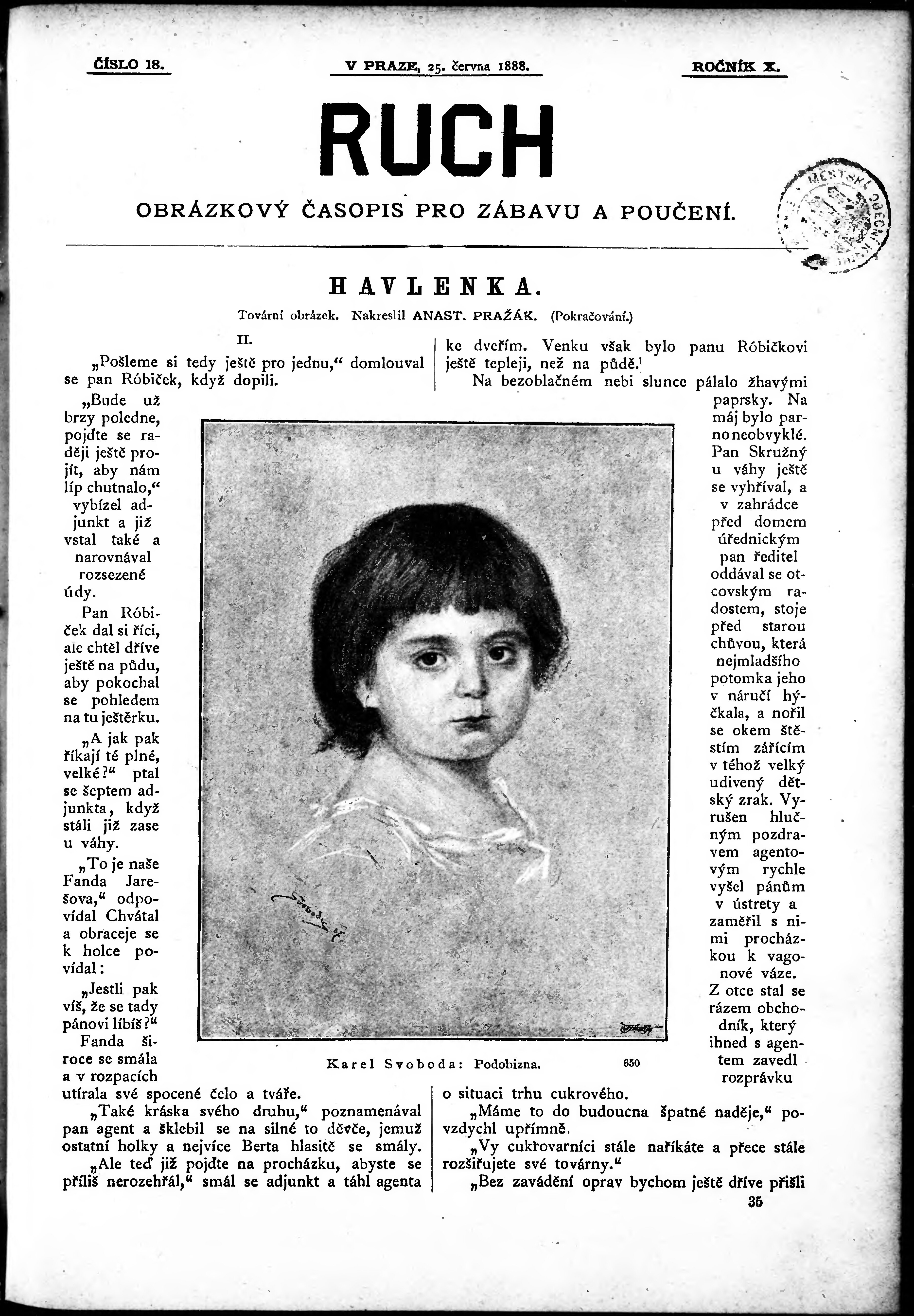 * Datum vydání výtisku: 25.6.1888 Číslo výtisku: 18