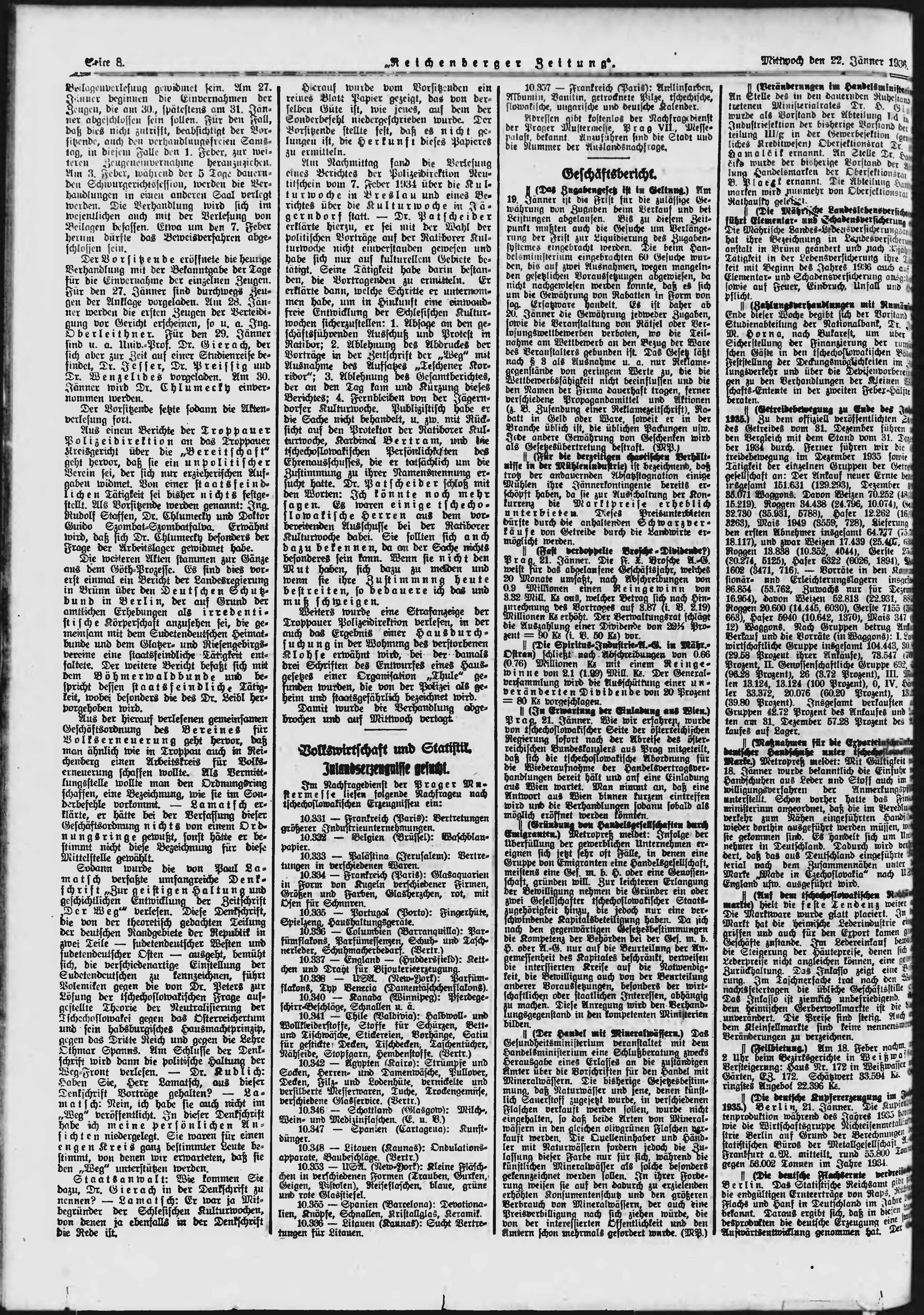 * Datum vydání výtisku: 22.1.1936 Číslo výtisku: 18 Poznámky k výtisku: ranní vydání;