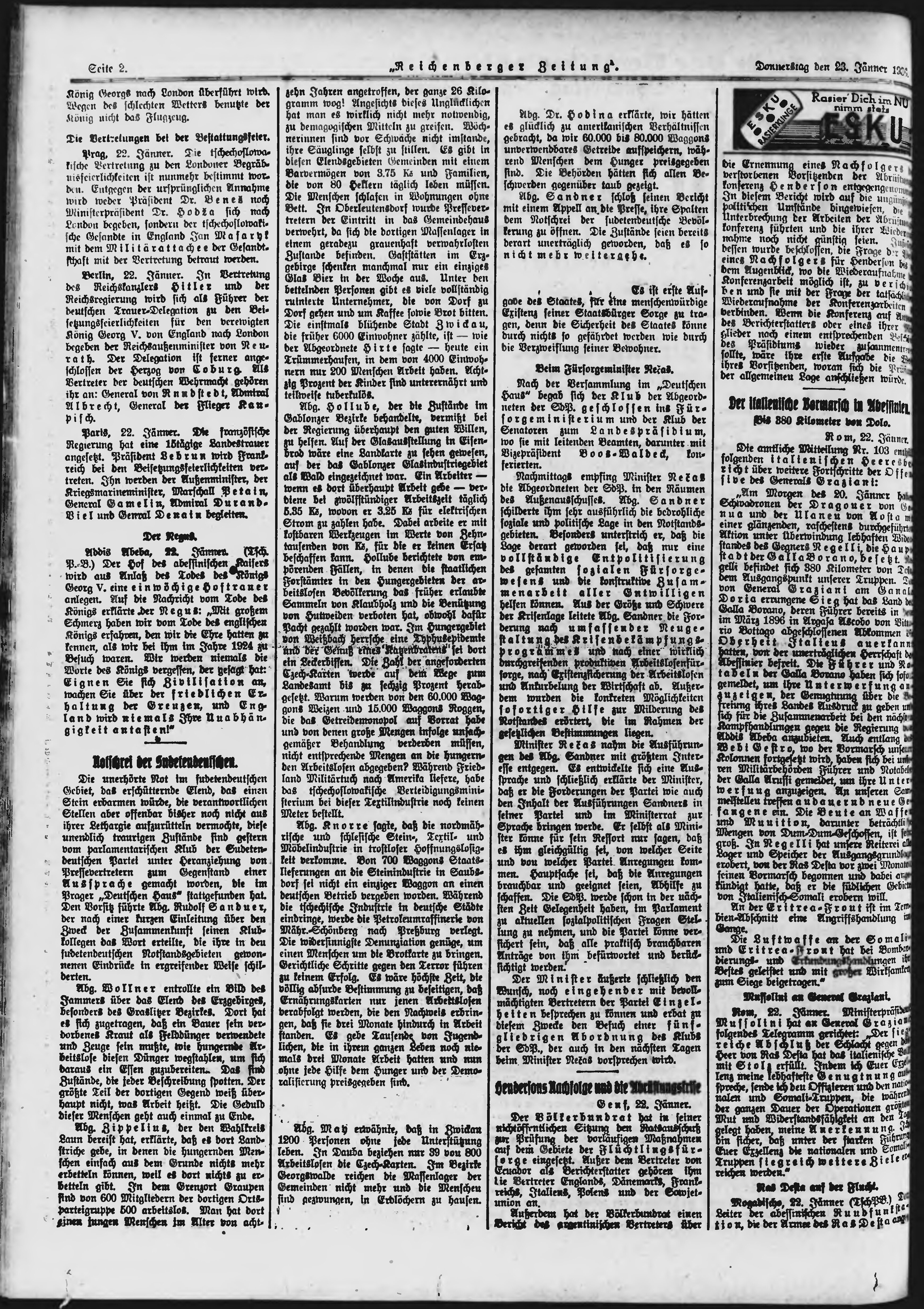 * Datum vydání výtisku: 23.1.1936 Číslo výtisku: 19 Poznámky k výtisku: ranní vydání; po konfiskaci druhé vydání;